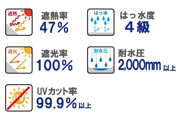 数値が高いほど影が濃くなり、日傘の基準(JUPA)は遮光率99%以上あれば遮光傘になります。