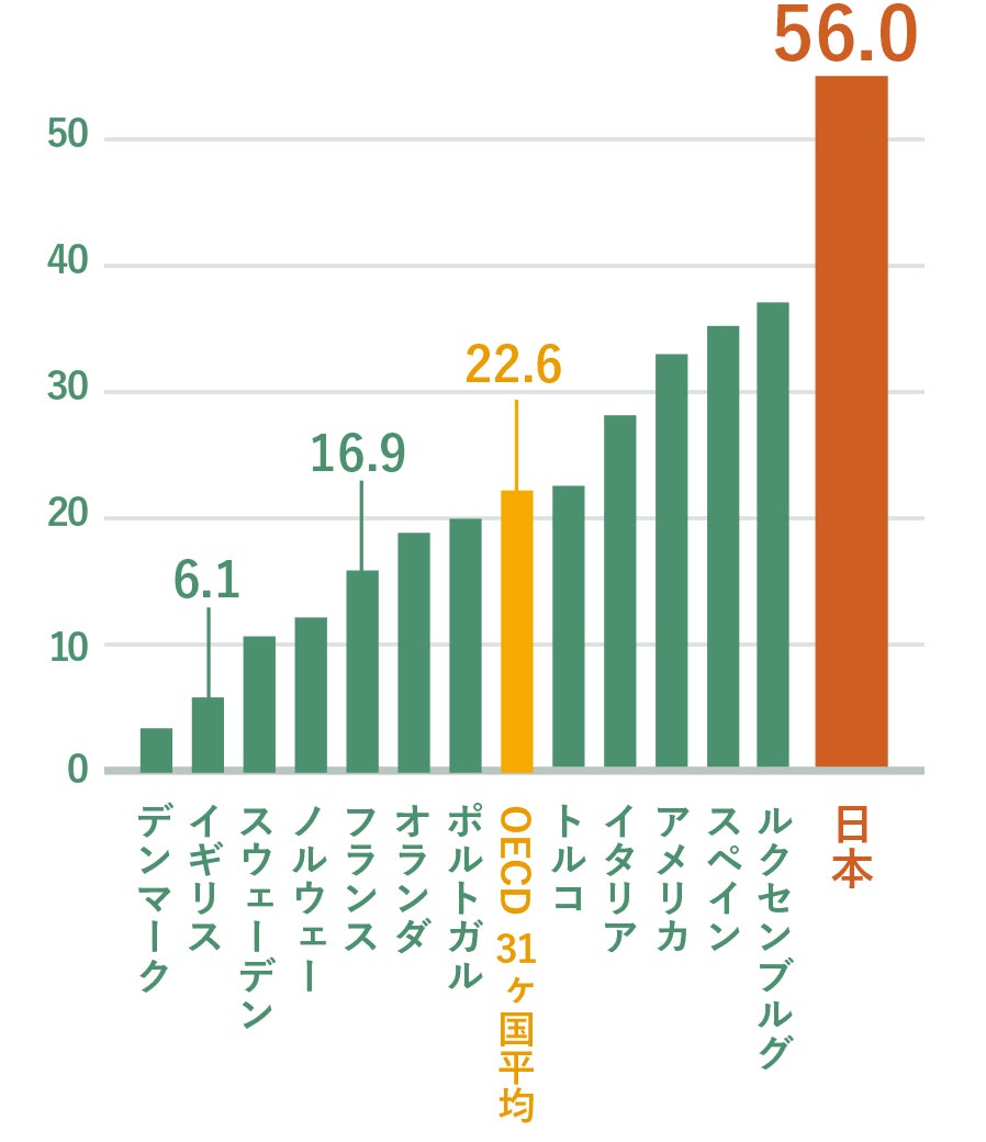 また、ひとり親世帯に限ると2人に1人が相対的貧困状態にあり、これはOECD諸国の中では最悪の数字となっています。
