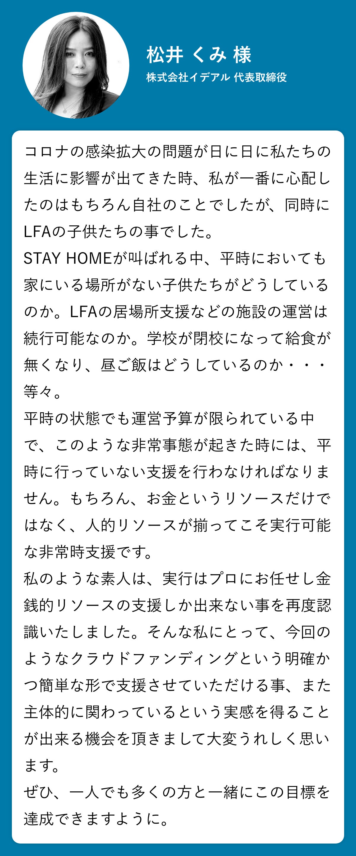 ※本クラウドファンディングでの寄付は寄付控除の対象とはなっておりません。