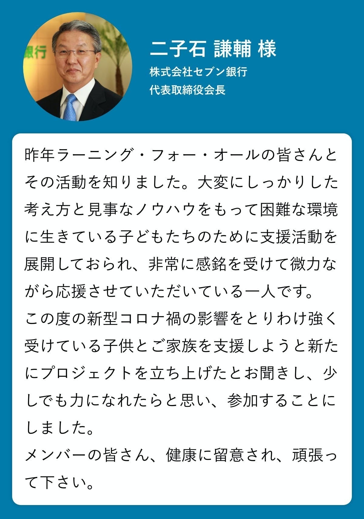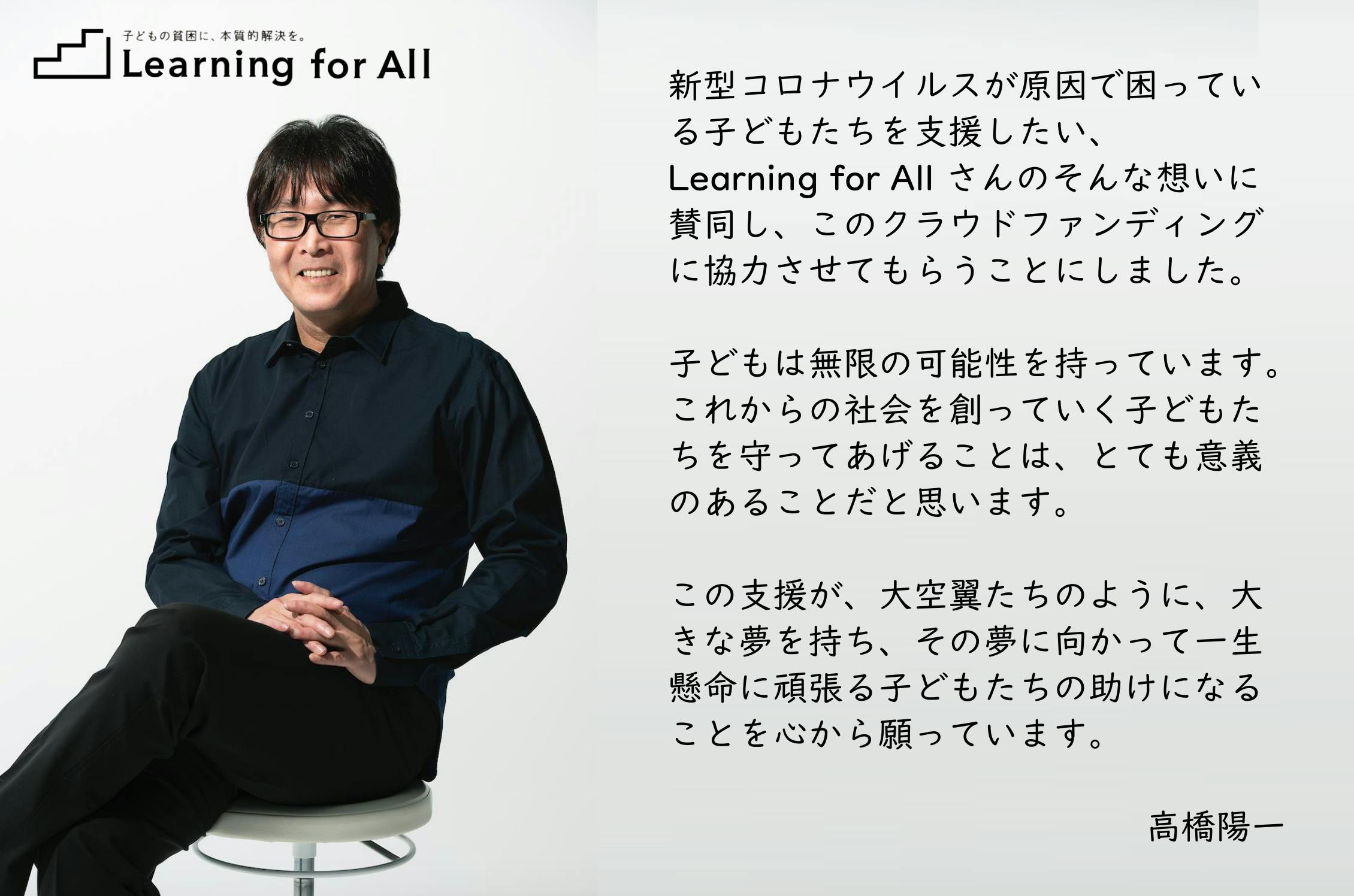 ひとりでも多くの子どもたちに支援の手が届くよう、Learning for All は子どもの声を聴きながら支援を続けていきたいと考えています。そのためには、多くの方々のご支援が必要です。今この瞬間も、子どもたちの置かれる環境は厳しくなっています。そして、子どもたちに将来にわたる悪影響を与えています。有事だから困難を抱える子どもを見捨てていいのか、私はそうは思いません。こうした状況だからこそ、最も厳しい状態にある子どもたちに手を差し伸べる社会でありたいと思います。ご支援をいただけますよう、どうぞよろしくお願いします。