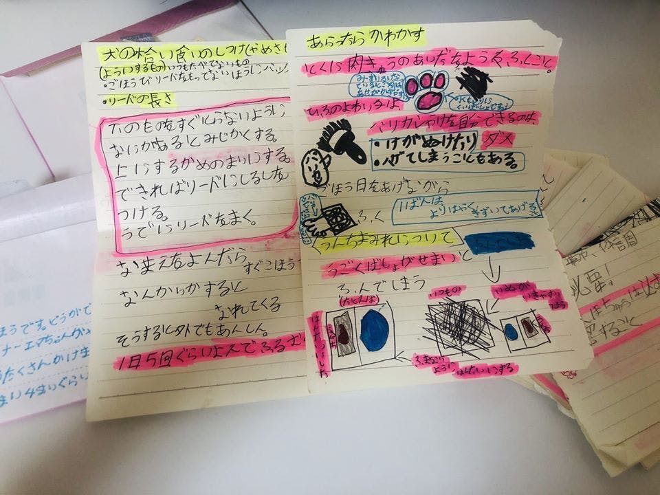 さらにリョウくんは6月に再開した対面での学習支援の際、自分なりに調べた「動物の飼い方」をたくさんまとめて持ってきてくれました(写真参照)。