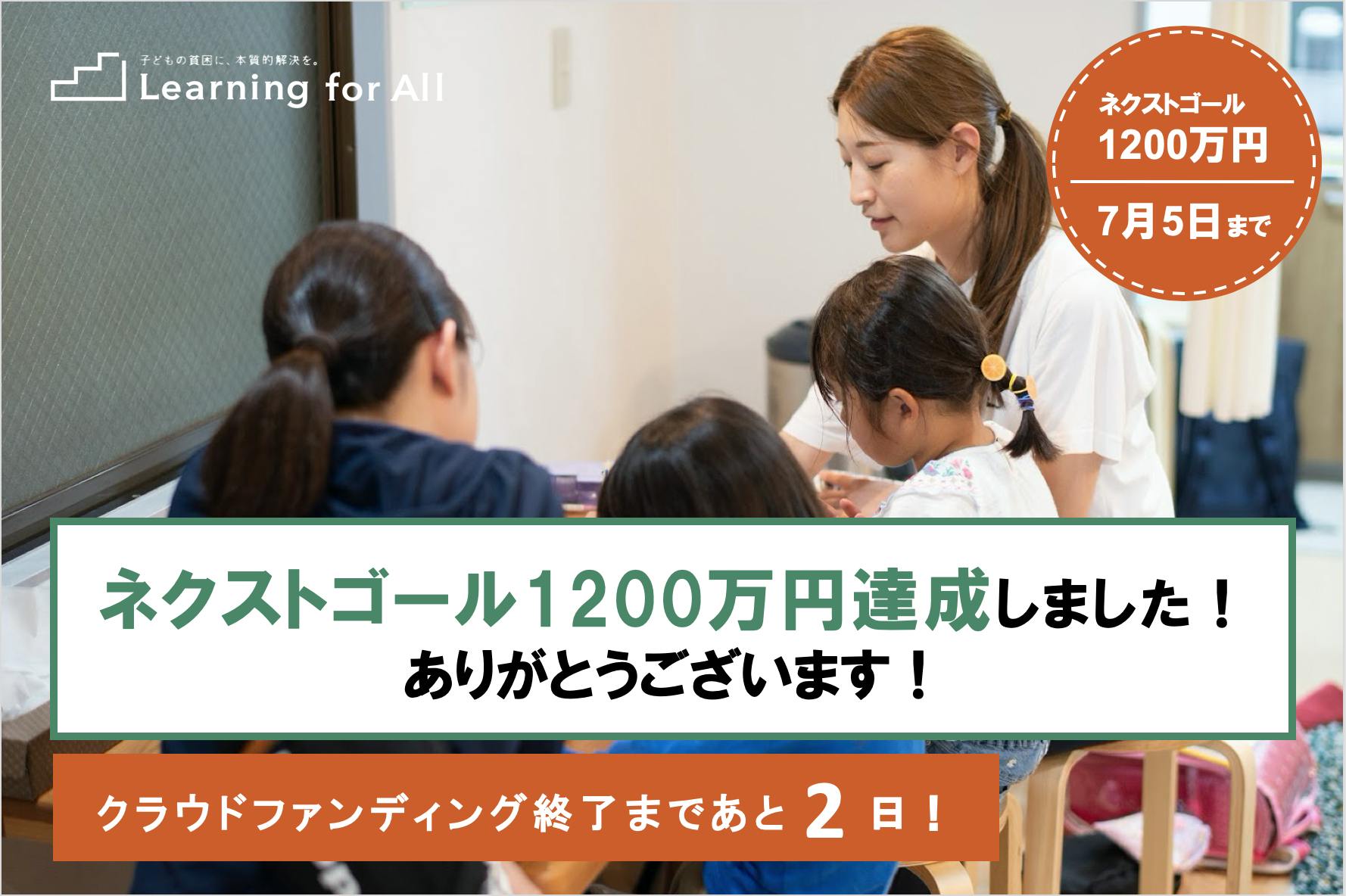 新型コロナウイルス感染拡大により、多大な影響を受けている子どもたちを支えるために5月22日から実施している「新型コロナ緊急支援プロジェクト by Learning for All 」クラウドファンディングも、残すところあと2日となりました。