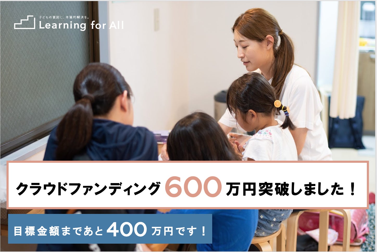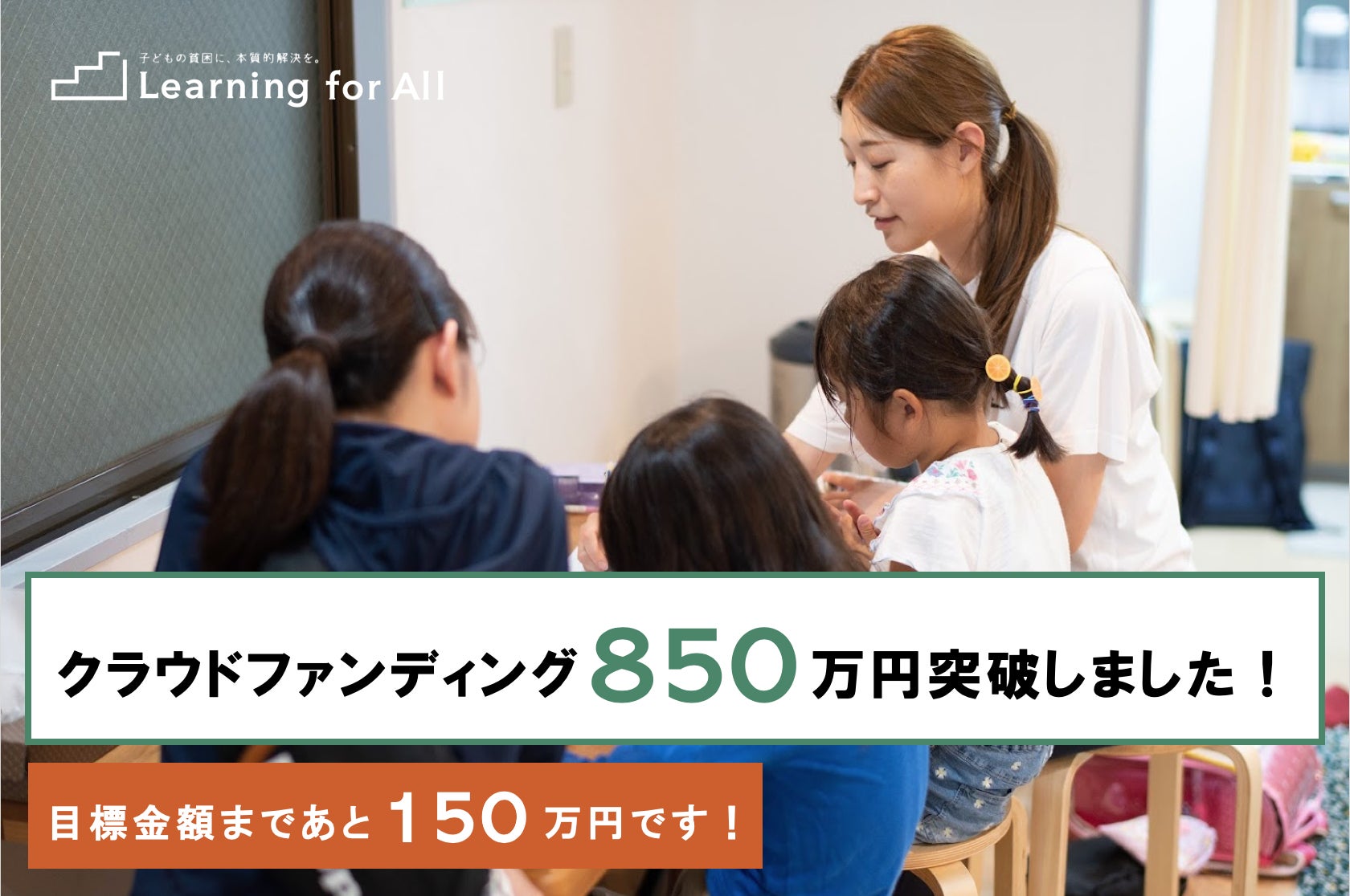 こんにちは。昨日6月3日(水)支援金額が850万円を突破しました。 たくさんの方にご支援いただき、誠にありがとうございます。--------------------------------------■6/4(木)18:00現在支援者数:349名支援金:8,778,195円(調達目標:10,000,000円)-------------------------------------- サポーターの皆さま、LFAボランティア経験者のアラムナイの皆さま、そして初めてLFAにご寄付をしてくださった皆さま、たくさんの方々にご寄付をいただき、心から感謝しております。 皆さまのおかげで目標金額まであと約150万となりました。目標金額の達成の先にある、子どもたちの今と未来を守るために、引き続きご支援・拡散のご協力をどうぞよろしくお願いいたします。