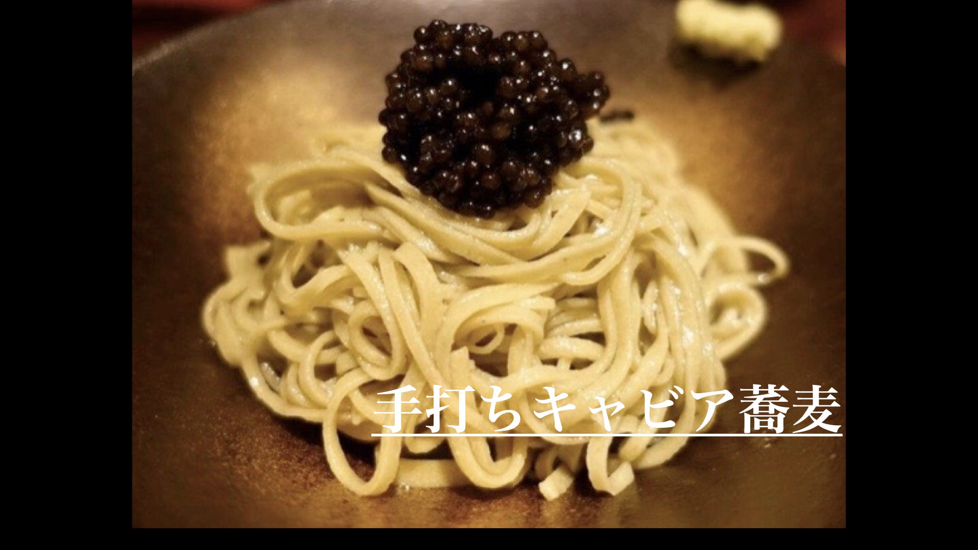 (手打ち蕎麦250g、イタリア産キャビア15g1瓶、 秘伝のそばつゆ)