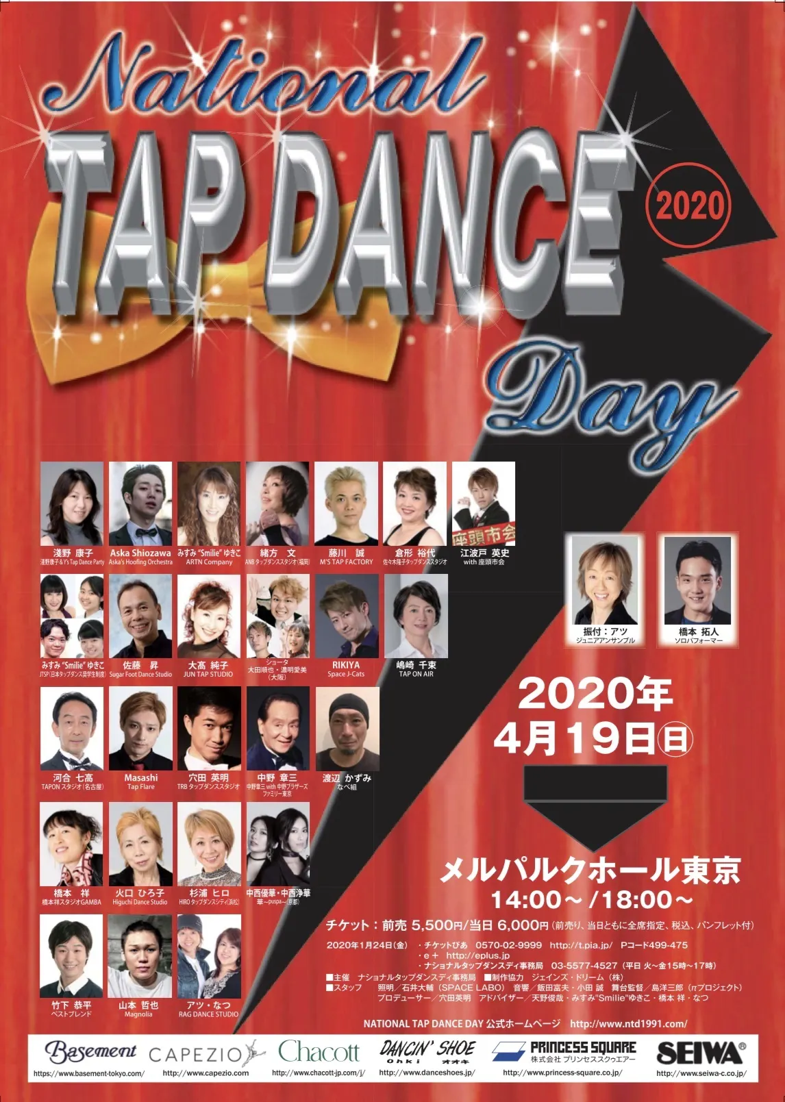 2020年4月19日開催予定で半年前から企画や交渉を進めて参りましたNATIONAL TAP DANCE DAY2020は新型コロナウイルスの影響で3月26日に中止を発表致しました。全体稽古も間近で出演者皆様の作品や衣装、その他これまでに費やしてきた様々な事がお客様にお見せする事が出来なくなりました。1991年から開催してきましたこのイベントですが、今回開催直前の中止で事務局の負担は大きく、存続や次回開催が危ぶまれてきました。今回は特にNATIONAL TAP DAYという開催名を改めましてNATIONAL TAP DANCE DAYという名前での第一回目の開催予定でした。現在活躍しているタップダンサーのほぼ全員がこのNATIONAL TAP DAYの舞台に立っている歴史と伝統のあるイベントです。NATIONAL TAP DAYをNATIONAL TAP DANCE DAYとして次世代に繋げていく為に、そしてNATIONAL TAP DANCE DAYの火を消す事なく次回開催を行いたいと思っておりすので、何卒ご支援のほど、よろしくお願い致します。タップダンスの力でこの状況を乗り越えて皆様に笑顔を届けたいと思っています。