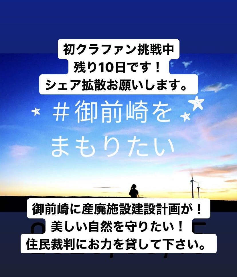 2020/08/19 22:01クラウドファンディングに初挑戦しておりますが、残り10日となってしまいました。これまでにたくさんの方から支援を頂きました。また励ましのメッセージも頂いております。ここまで来れたのは、皆様の応援のお陰です。本当にありがとうございます。最後のラストスパートとなりますが、まだこの問題を知らない方にも届くように、シェア・拡散にお力をお貸し頂ければと思います。個人的にお知り合い、ご友人などに、ラインやメッセンジャー等で、リンク:https://camp-fire.jp/projects/view/283199を送って頂けますと幸いです。また、下記のインスタやツイッターを、フォロー等してもらえますと嬉しいです。--------インスタグラムで御前崎の素敵な自然の写真をアップしてます。フォローよろしくお願いします。↓https://instagram.com/go_fund_legal_costs_project?igshid=1vnrlscojr047--------ツイッターでニュース、記事系をアップしてます。リツイートよろしくお願いします。↓https://twitter.com/gofundlegalcos1以上となります。改めて、本当にご支援どうもありがとうございます。 もっと見る