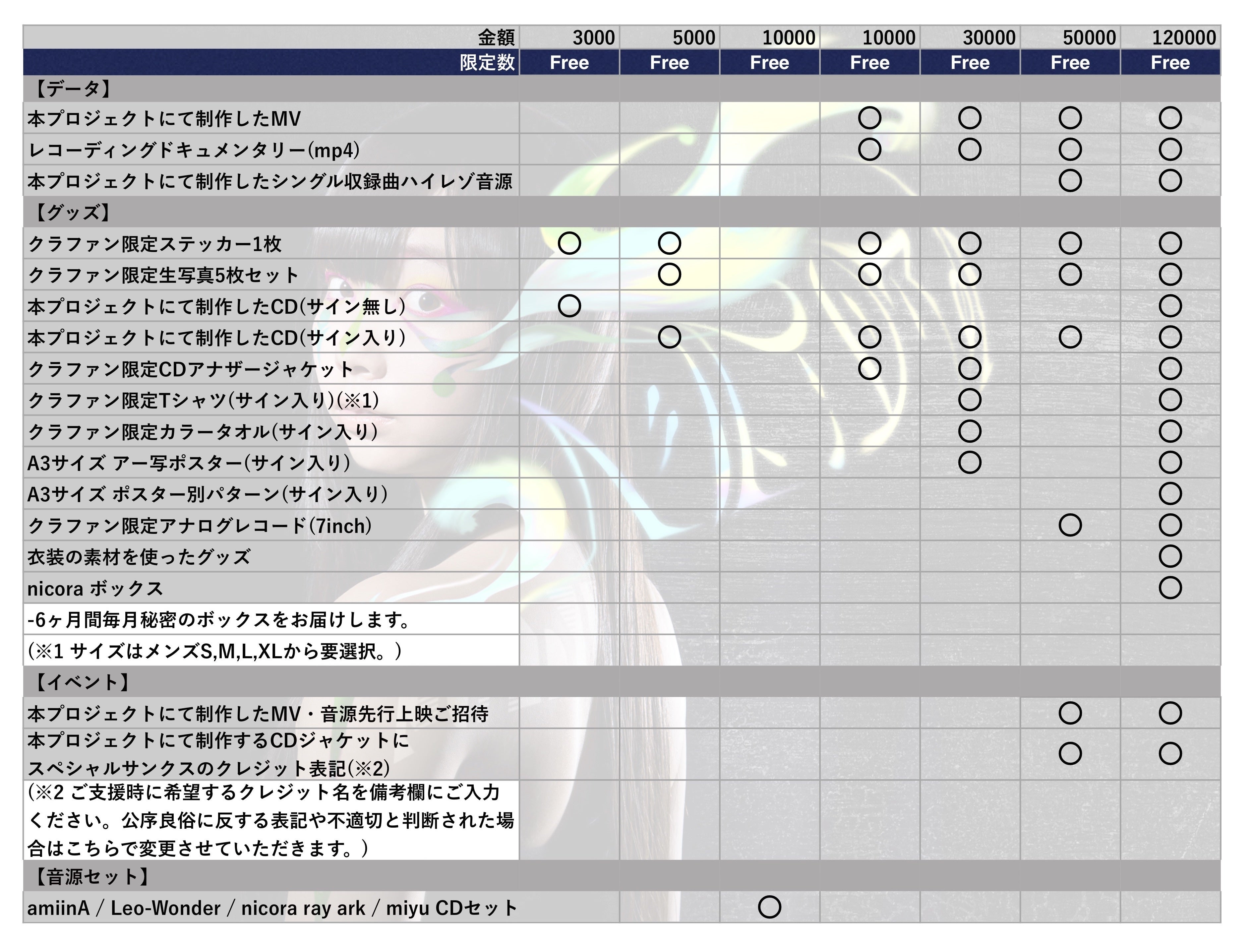 作品づくりを’’妥協せず’’に’’こだわる’’には、アイデアを形にするための予算が必要であり、アーティストそれぞれが最大限のポテンシャルを出した作品をみなさまに届けたいという思いから、初のクラウドファンディングをスタートすることに致しました。