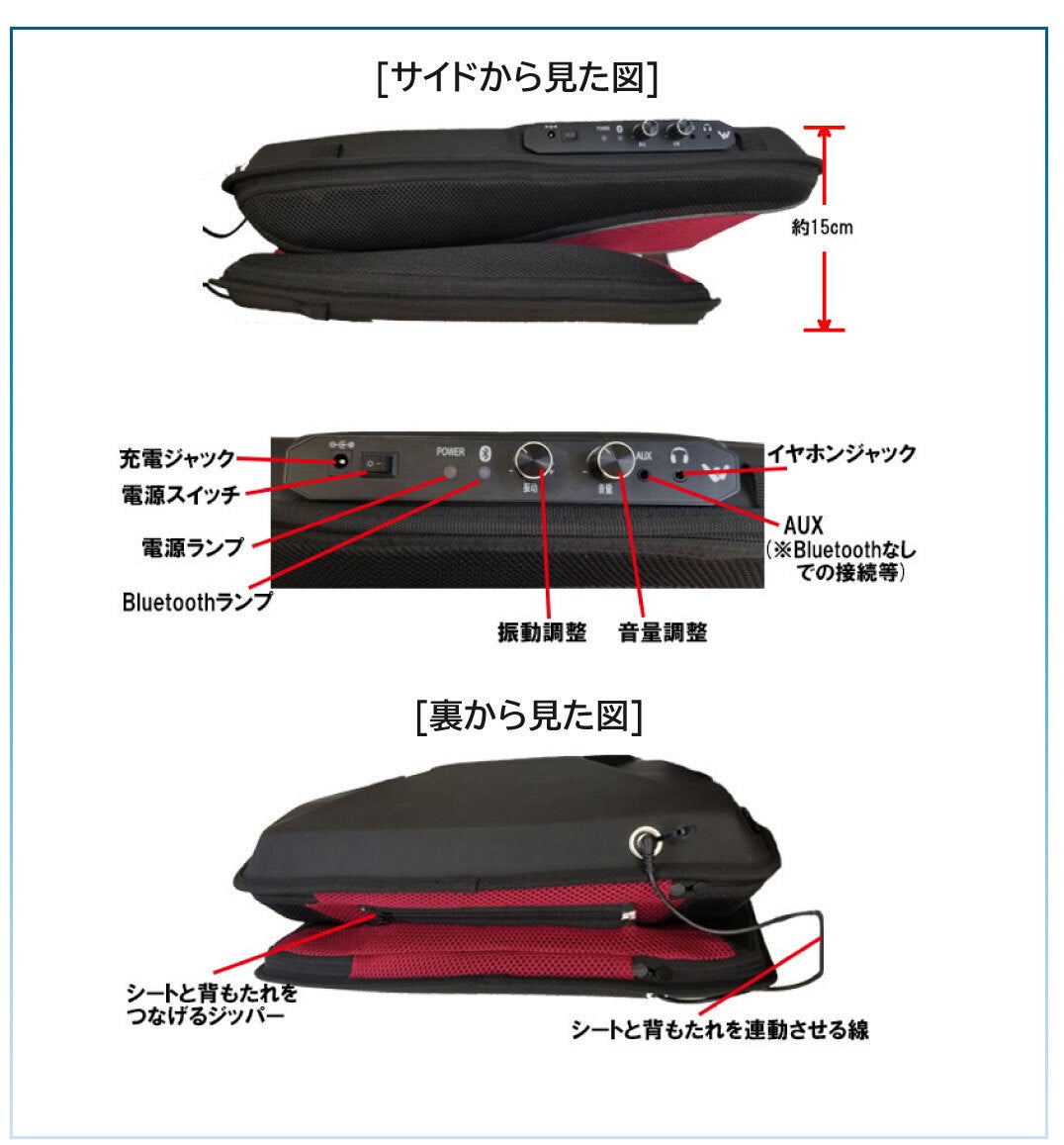 (*こちらはスピーカーが内蔵され、振動と共に音も感じる事ができます。)