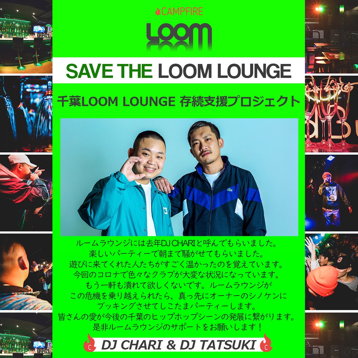 自分もBLAMEというイベントでお世話になっているLOOM LOUNGEが新型コロナ感染症の被害を受けてクラウドファンディングを開始しております。