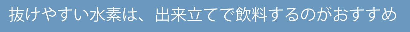 日常に水素を体に取り込むには、水素水として摂取することが一般的ですが、水素を選ぶポイントは、1000ppb以上の水素濃度を保っていることがポイントです。