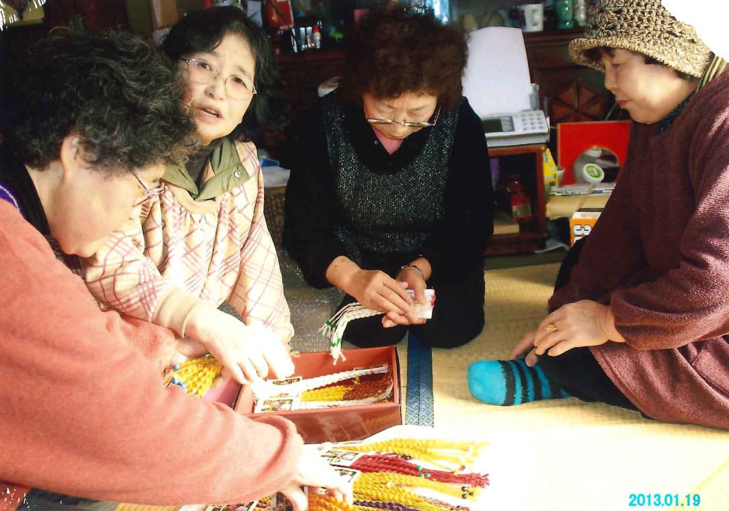 自立支援プロジェクトの「被災地に仕事を~三陸のミサンガ」は、2011年3月11日に起こった "東日本大震災" により、家や仕事を失った被災地の方々に、手作り品の提案、資材などを無償提供し、「編み物、縫い物で癒し効果を得つつ、仕事をし、収入を得る」という「メンタルケアと自立支援(仕事をし、収入を 得る)」をテーマとして発足されたのが始まりです。
