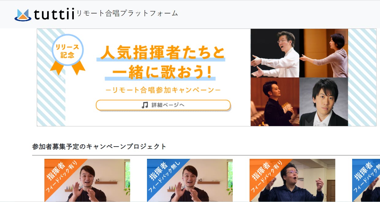 私たちは、歌う機会を失ってしまった合唱部の小中高生のための支援活動として、リモート合唱プラットフォーム「tuttii(トゥッティ)」を立ち上げ、リモート合唱で一つの作品をつくりあげる場を提供しています。