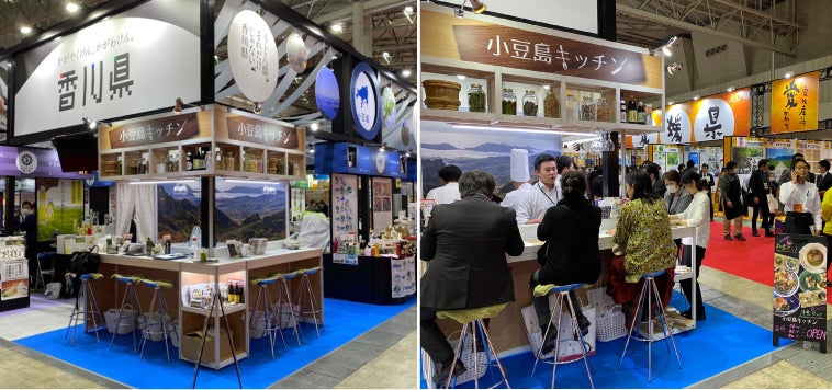 2020年2月幕張メッセで開催された「スーパーマーケットトレードショウ2020」にて、業種や企業の垣根を越えて、小豆島の地場産業を広くPRするブース「小豆島キッチン」を展示。カウンタースタイルの模擬店舗として各企業の商品をアレンジした試食で、多くのお客様に小豆島の食品産業の魅力を伝えることができました。