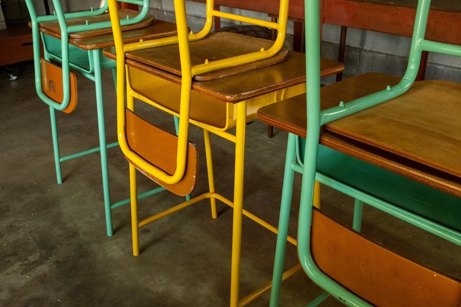 たくさんございますが、おススメは学校の机と椅子をリメイクしたセットです。