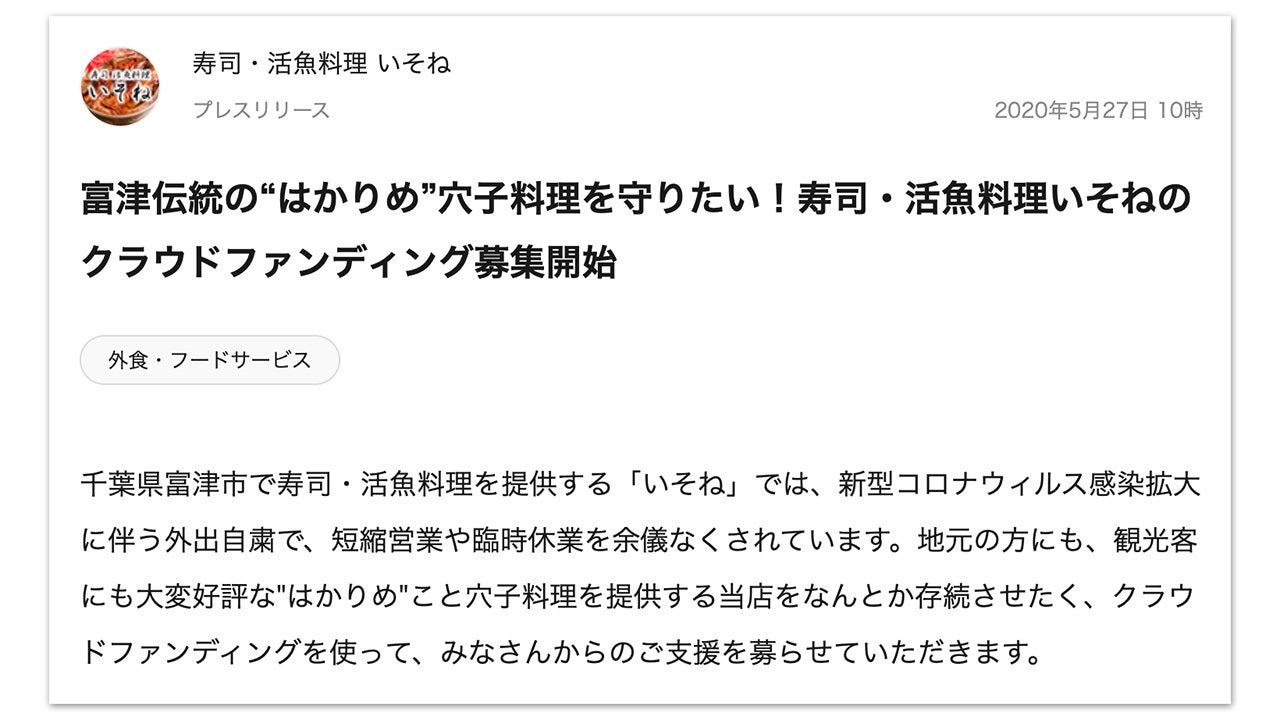 今回のクラウドファンディングをなんとかたくさんの方に知っていただこうと、プレスリリースというものも出してみました。