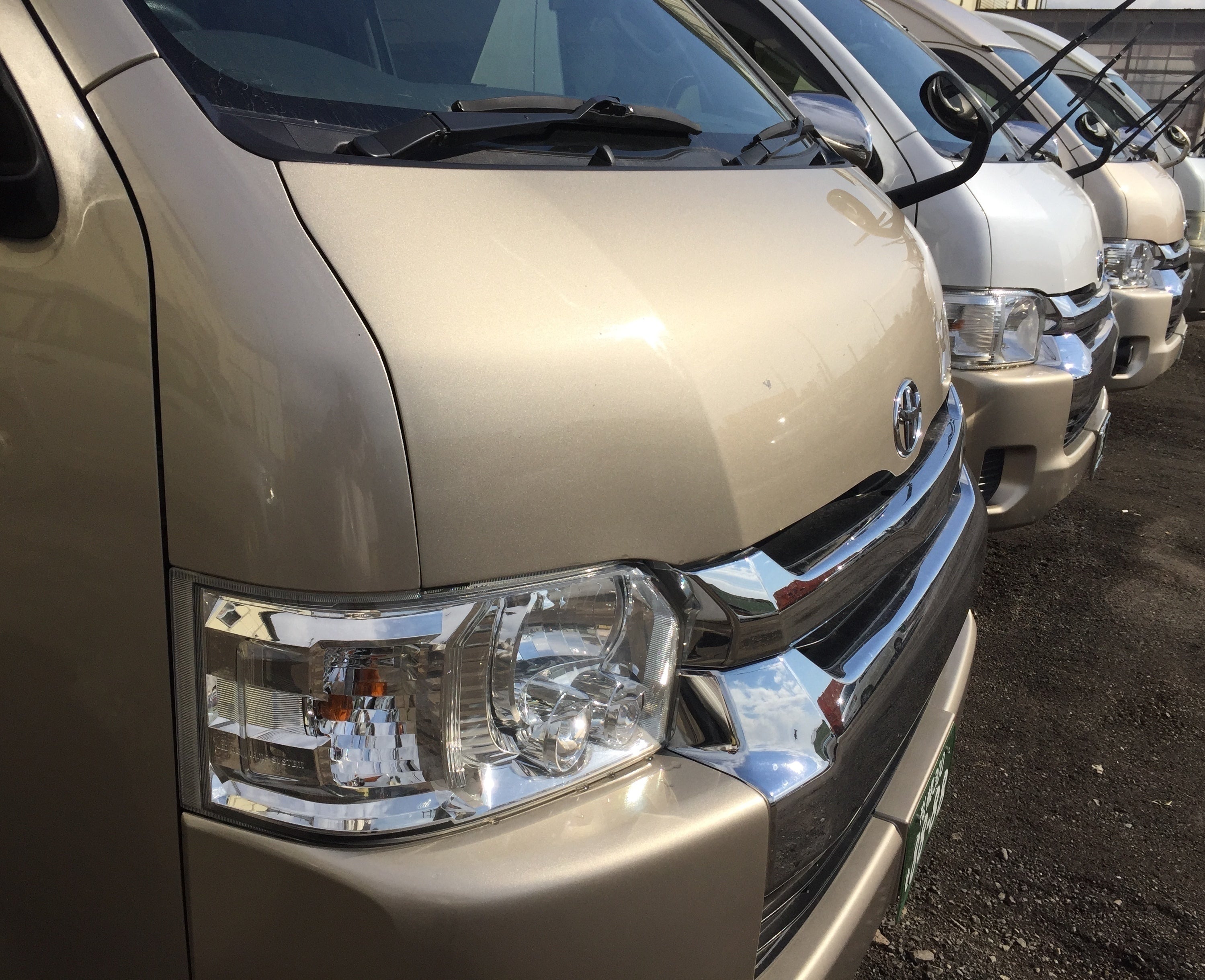 4月より貸切対応の大型車は休車、減車に。経費削減のため、5月半ばからは通常のタクシー営業も控えています。わんわんタクシー自慢のクルマ達の多くは車庫でホコリを被って、出番を待ち続けています。(5月31日現在)