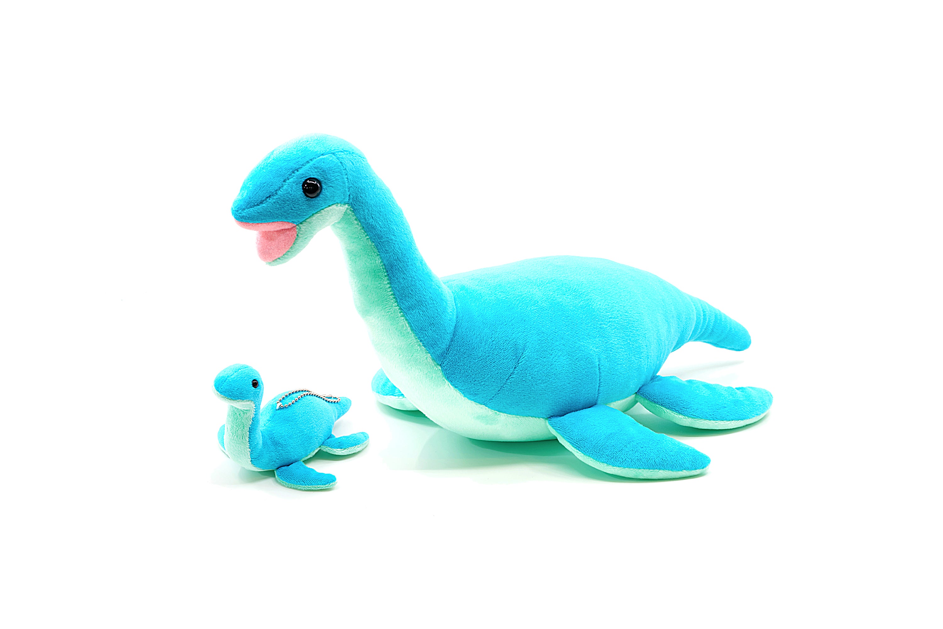 むかわ町穂別地区で発見された、クビナガリュウ(愛称 ホッピー)のぬいぐるみです。キーホルダーとセットです。