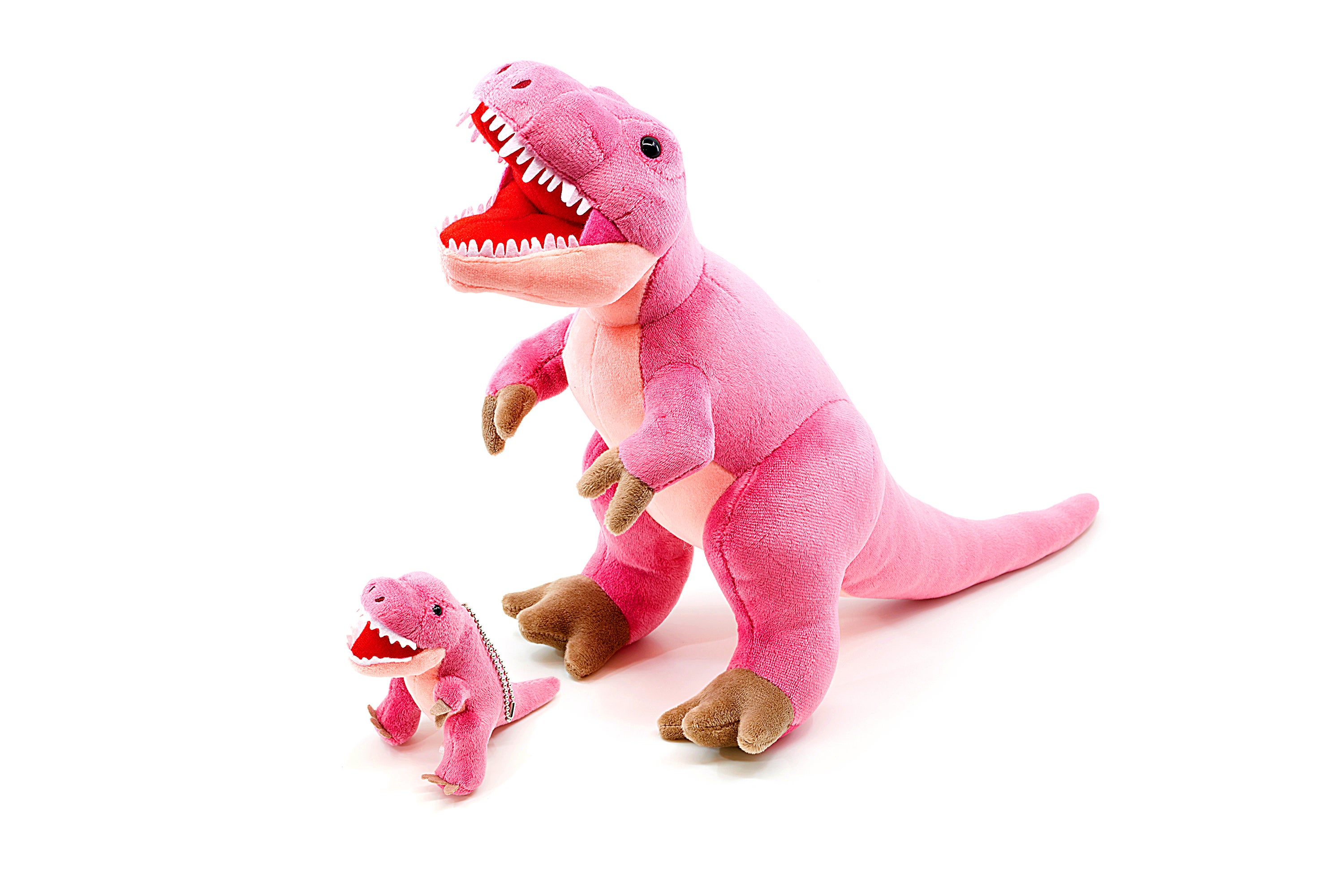 おなじみのティラノサウルスのぬいぐるみです。キーホルダーとセットです。むかわ町穂別博物館に化石のレプリカが所蔵されています。