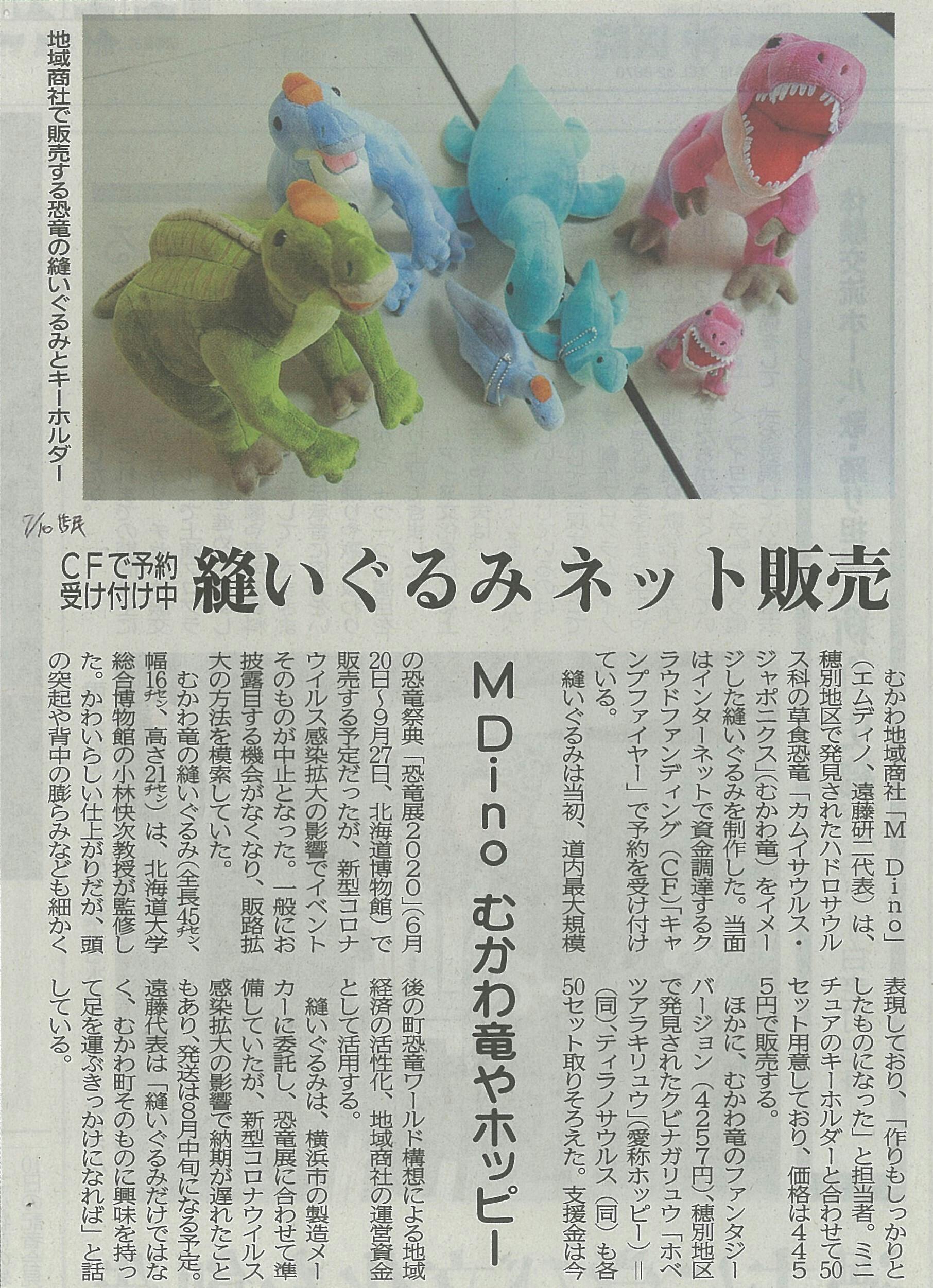 7月10日の苫小牧民放に、クラウドファンディングの記事を取り上げていただきました!