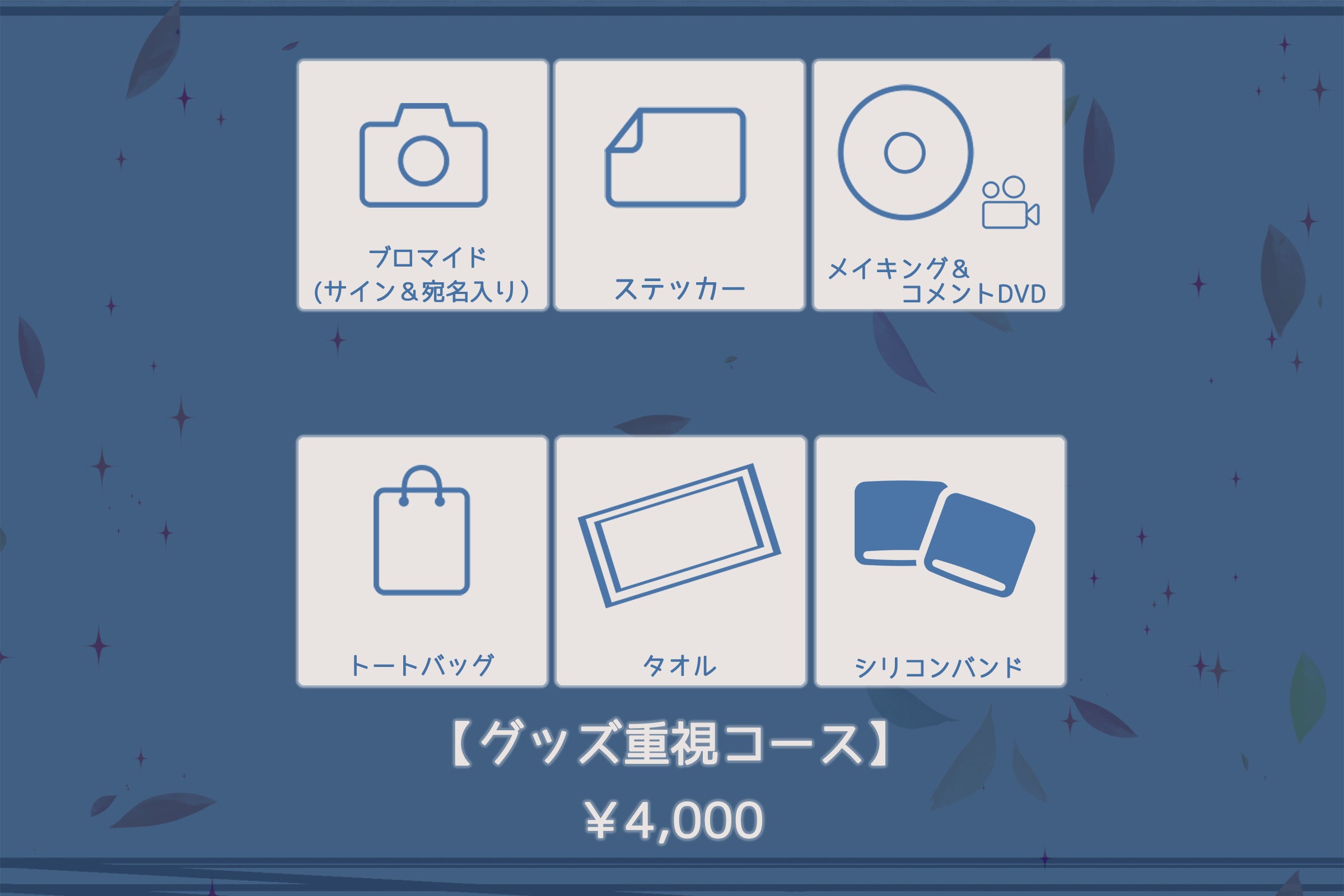 お礼のグッズや音源、映像作品などをお届けします。