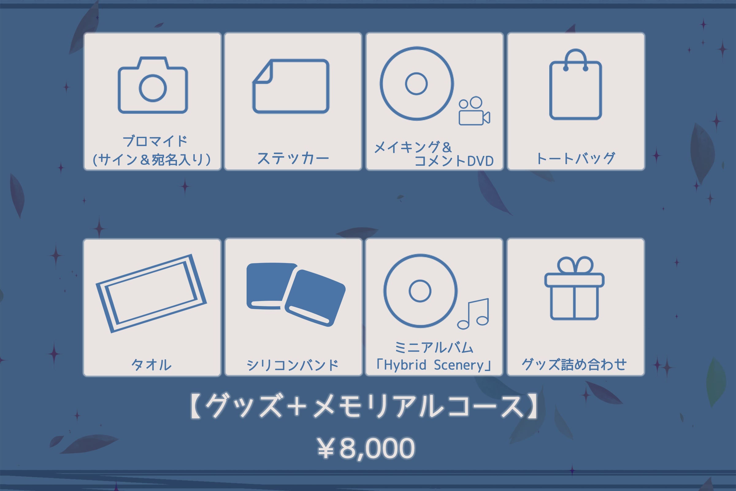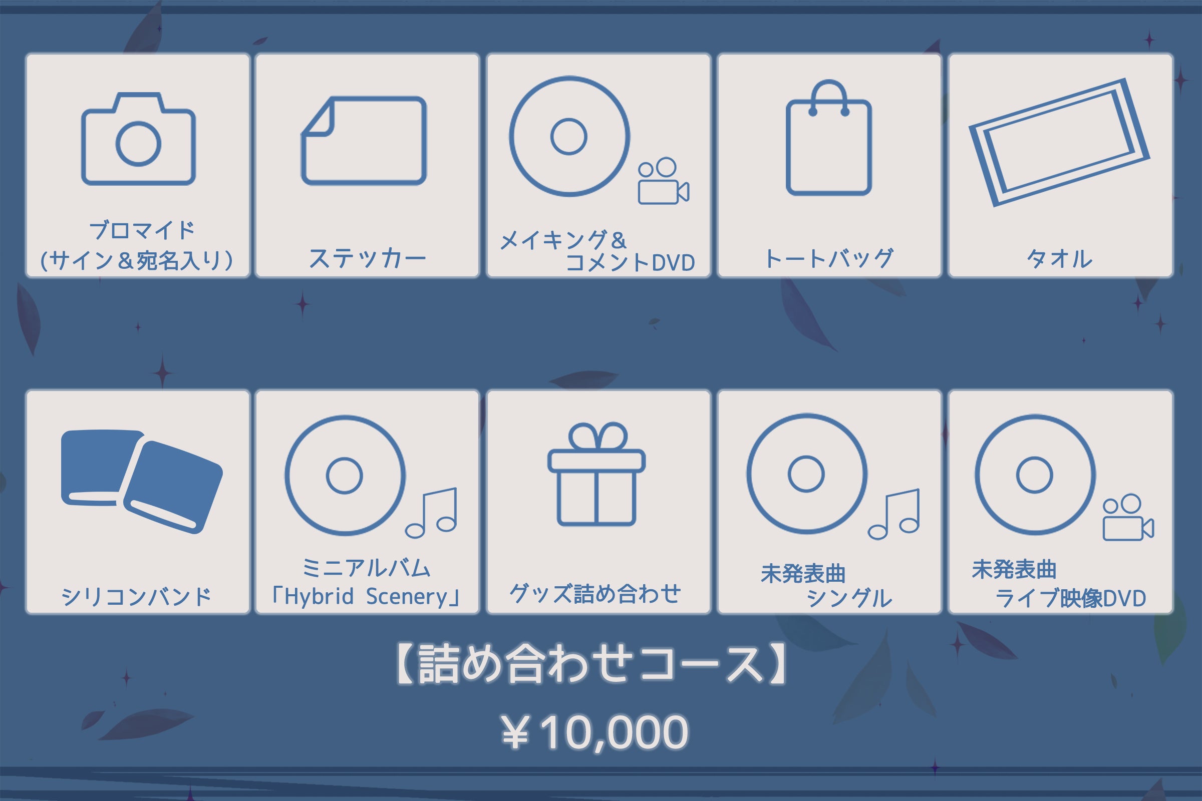 記念となるグッズや音源、映像などをお好みでお選び頂き今回のツアーで会えなくても皆様と共に歩んだ軌跡を遺せたら幸いです。