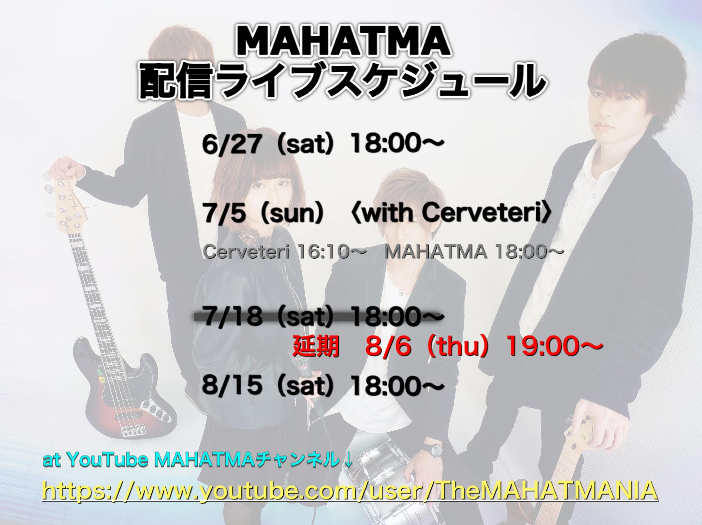 本日7/18 18:00から予定していましたMAHATMA生配信ライブですが