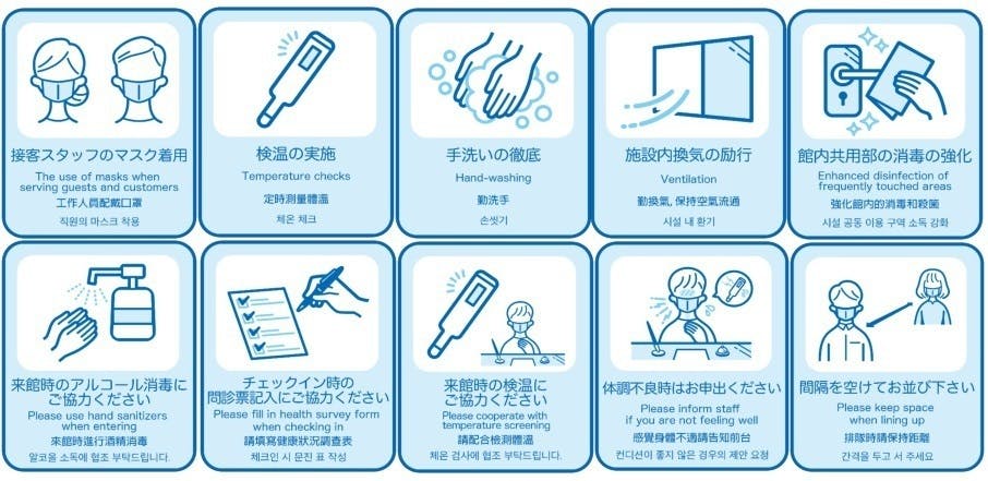・宿泊客、従業員の中に無症状感染者がいる可能性があることを踏まえて、検温・問診表など感染防止策を取らせていただいております。