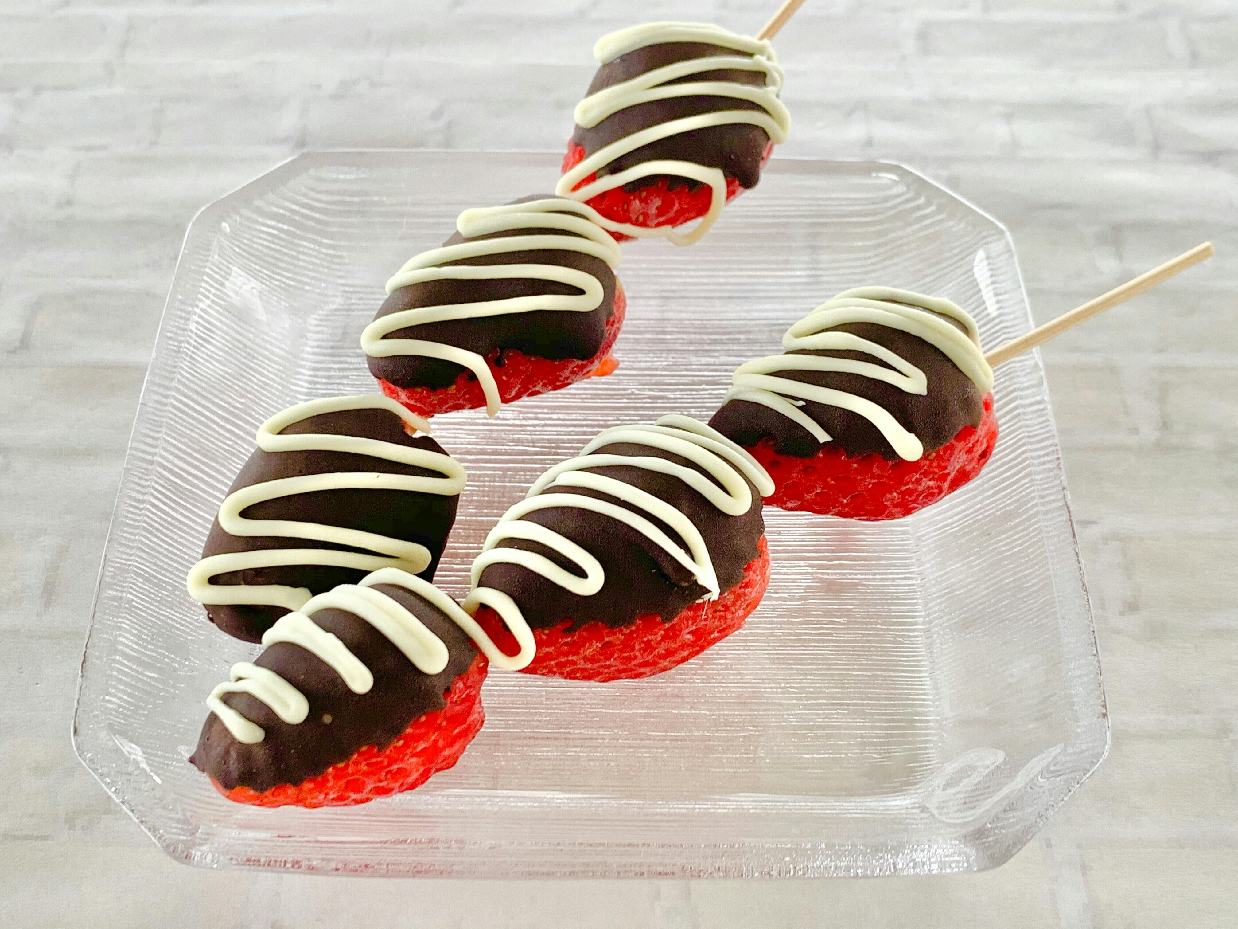 いちごの果実をまるごと味わえる新感覚のアイスです。フローズンいちごにチョコレートをコーティングしました。