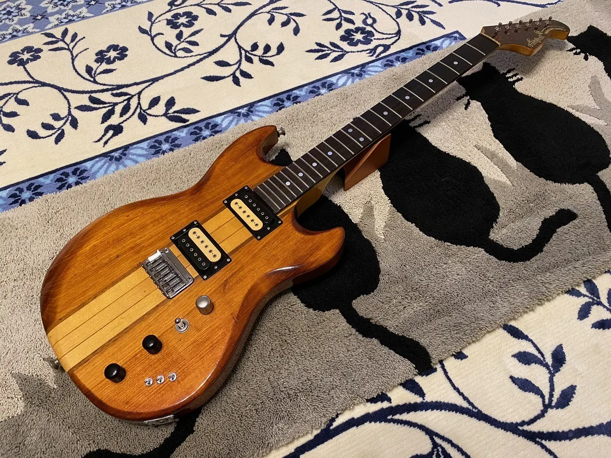 2020/10/26 18:20ジャパンビンテージの入門モデル上位機種はスルーネックですが、このモデルはスルーネック風のセットネック。Aria Pro II TSシリーズの最廉価版のTS-400(1980年製)ですが、上位機種と変わらず丁寧に作られています。マシーンヘッド(ペグ)/ブラスナット/ピックアップ/ブリッジは純正オリジナル品ですが、電装系はすべて交換し、信頼性を確保、ピックアップリング(エスカッション)や各ノブは金属製を採用し、付加価値・高級感を演出しています。40年経っていることもあり、傷は多いですが、塗装のコンディションが良いので、そのままにして価格を抑えています。コイルタップ/フェイズアウトスイッチ付きで音色は多彩。ジャパンビンテージの入門用にいかがでしょうか。Mid-Night Music Communications では、このような観点でもギターを制作しています。世界で一本のギターに… もっと見る