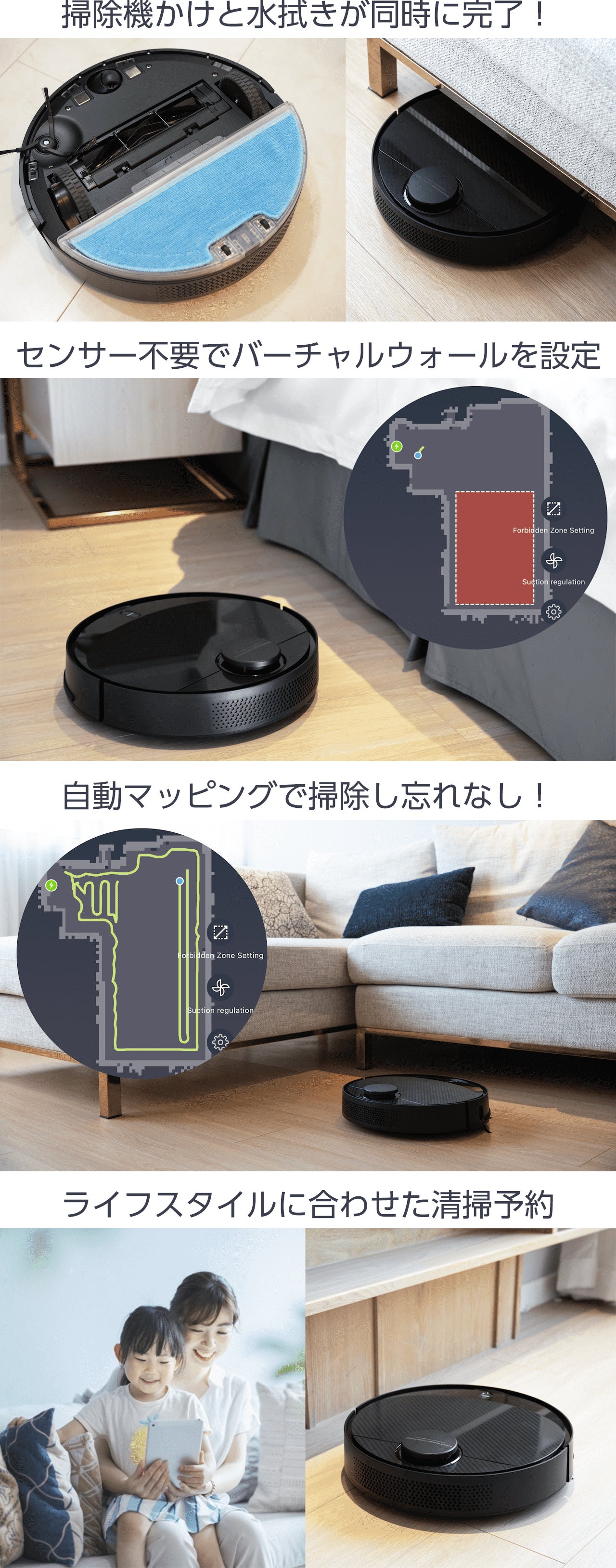そこで「RobotVacuum Laser +mop」の出番!掃除の中でも負担の大きい水拭きをお任せしちゃいましょう。