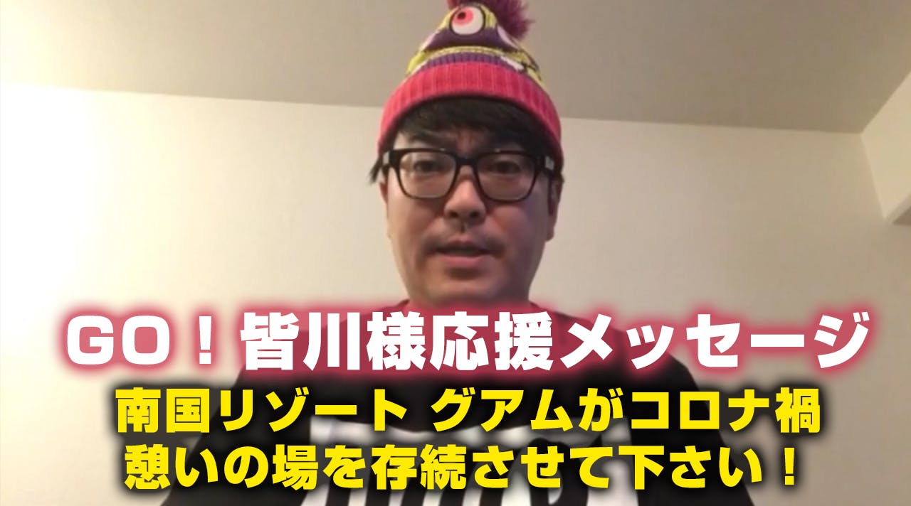 2020/08/11 19:59この度はグアム応援プロジェクトにご支援、ご関心いただき誠にありがとうございます。 本日、芸人 GO!皆川様より本プロジェクトへの応援メッセージムービーを頂戴しましたので、ここにご報告させていただきます。 メッセージ詳細は、プロジェクトページにて公開されておりますので、ご閲覧いただけると幸いです。 プロジェクト終了まであとわずかとなりましたが、皆様のご支援、ご声援にお応えできるよう、スタッフ一同がんばってまいりますので引き続きご声援の程、どうぞよろしくお願いいたします。 もっと見る