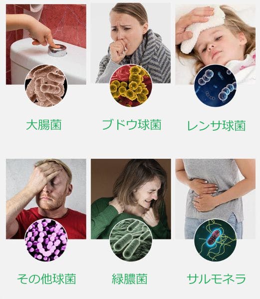 大腸菌、黄色ブドウ球菌、コロナ、インフルエンザウイルスなどよく身の回りに存在する細菌、ウイルスに対して強い殺菌能力を持つUVCは、こんな場所で使用できます。