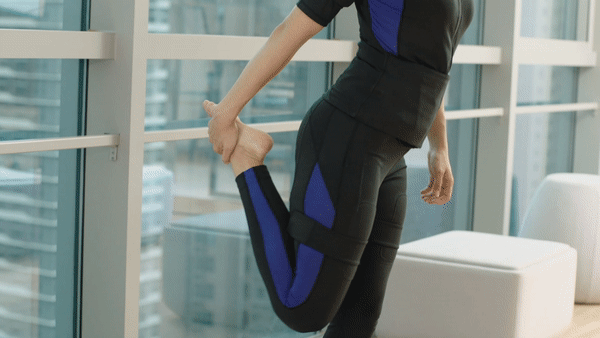 EMSスーツとご使用方法・性能は同じですが、レギンスパンツはふくらはぎから足首にかけて透かしが入り、よりスタイリッシュなデザインになっています。