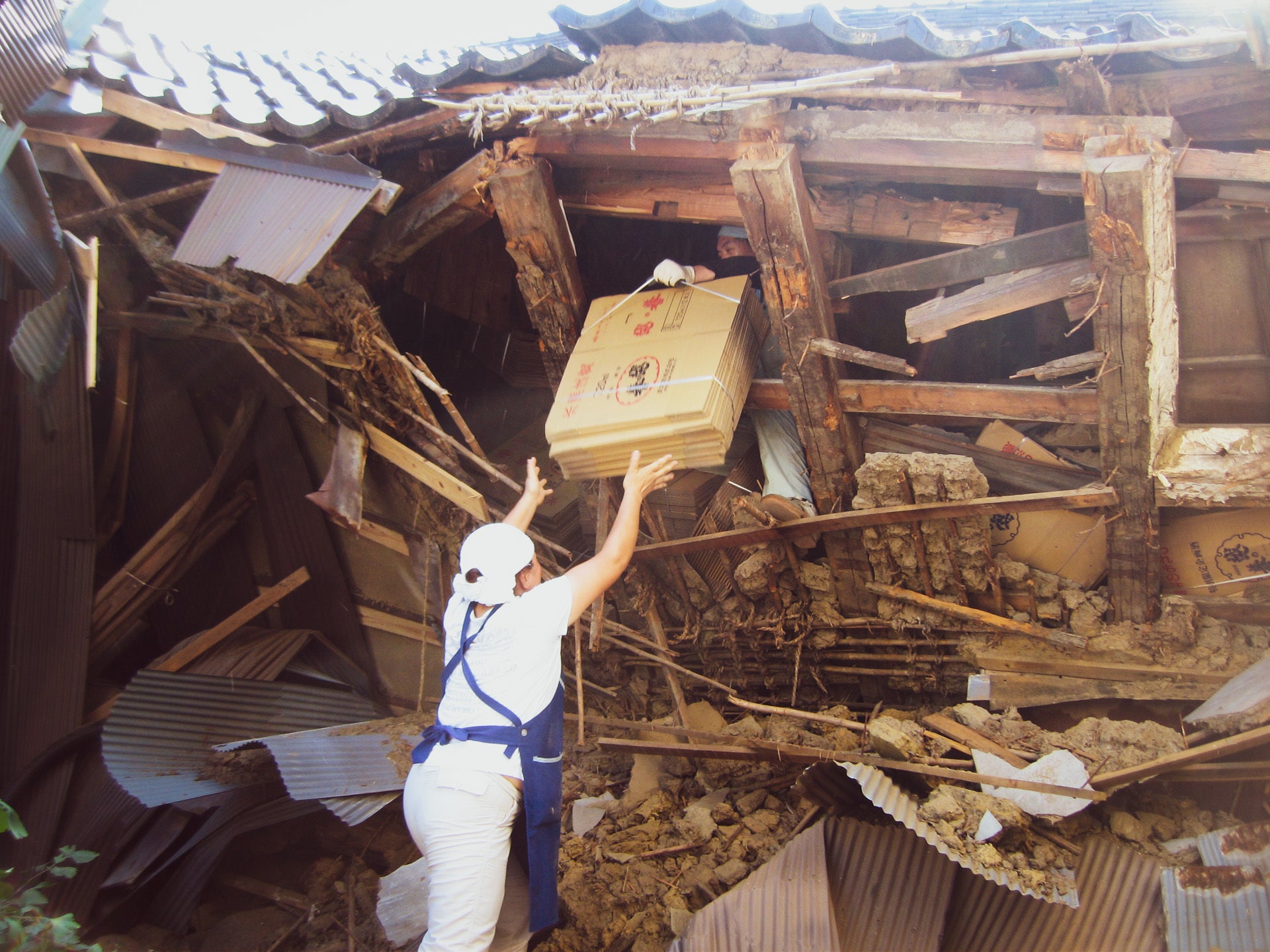 崩れなかった場所でお酒を詰めていました