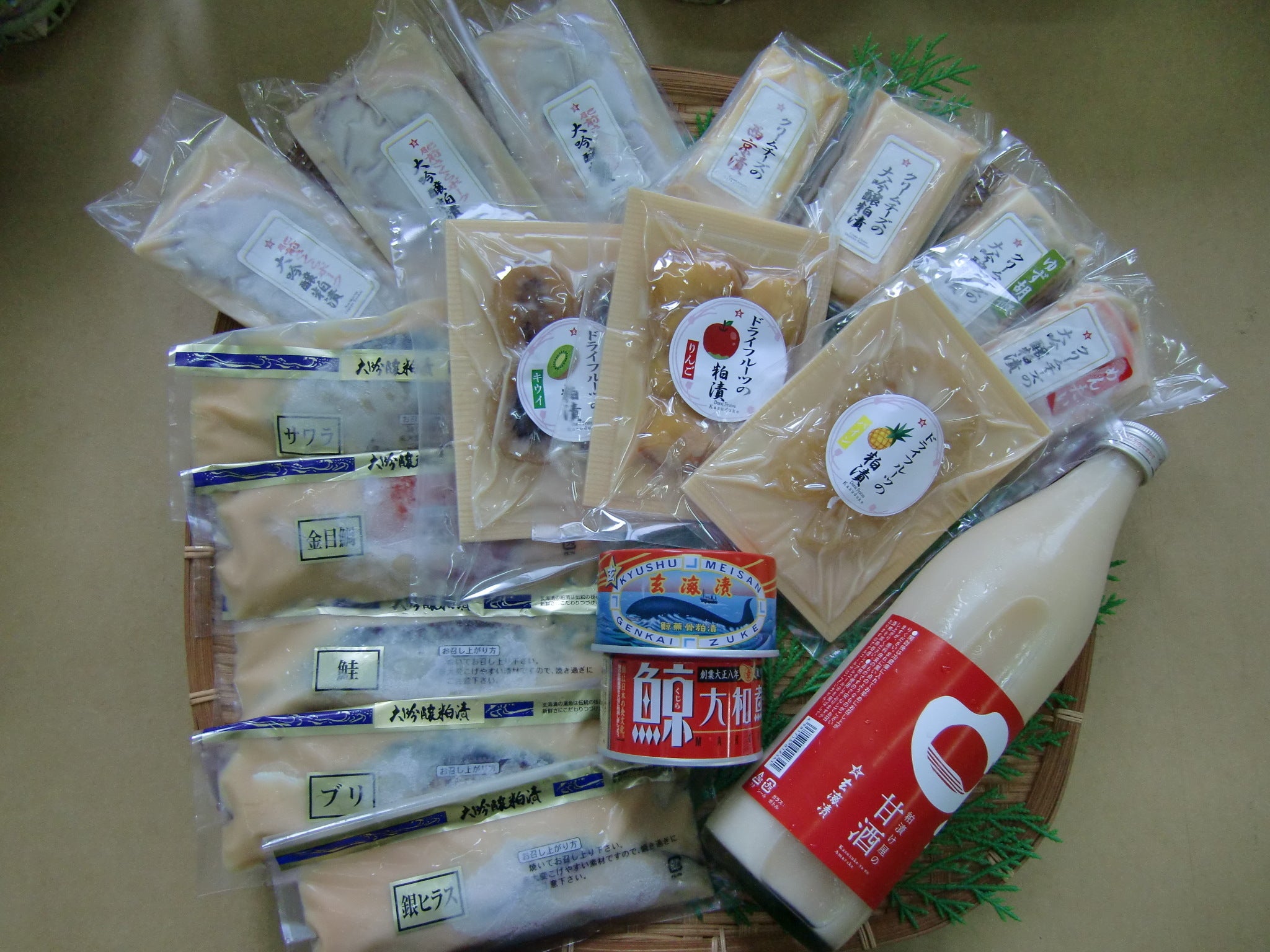 弊社の看板商品である玄海漬(鯨の軟骨粕漬)を中心に山海の粕漬、酒粕を使った弊社オリジナルの商品の詰合せをリターンさせていただきます。