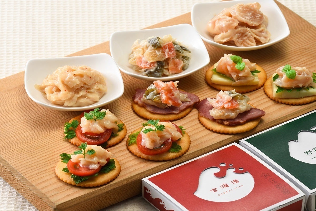 玄海漬(鯨軟骨粕漬)、昔懐かしい鯨の大和煮、地元佐賀県のJAオリジナルのさくらポーク、5種類の魚の切り身を弊社オリジナルの大吟醸にじっくり漬け込んだ大吟醸粕漬と人気急上昇のクリームチーズ大吟醸粕漬とまろやかな風味が人気のクリームチーズ西京漬、これにゆず胡椒、めんたいの2種類のフレバーを加えたクリームチーズ大吟醸粕漬、酒粕入り甘酒、新商品のドライフルーツ粕漬の3種類(りんご、パイン、キウイ)を詰合せました。