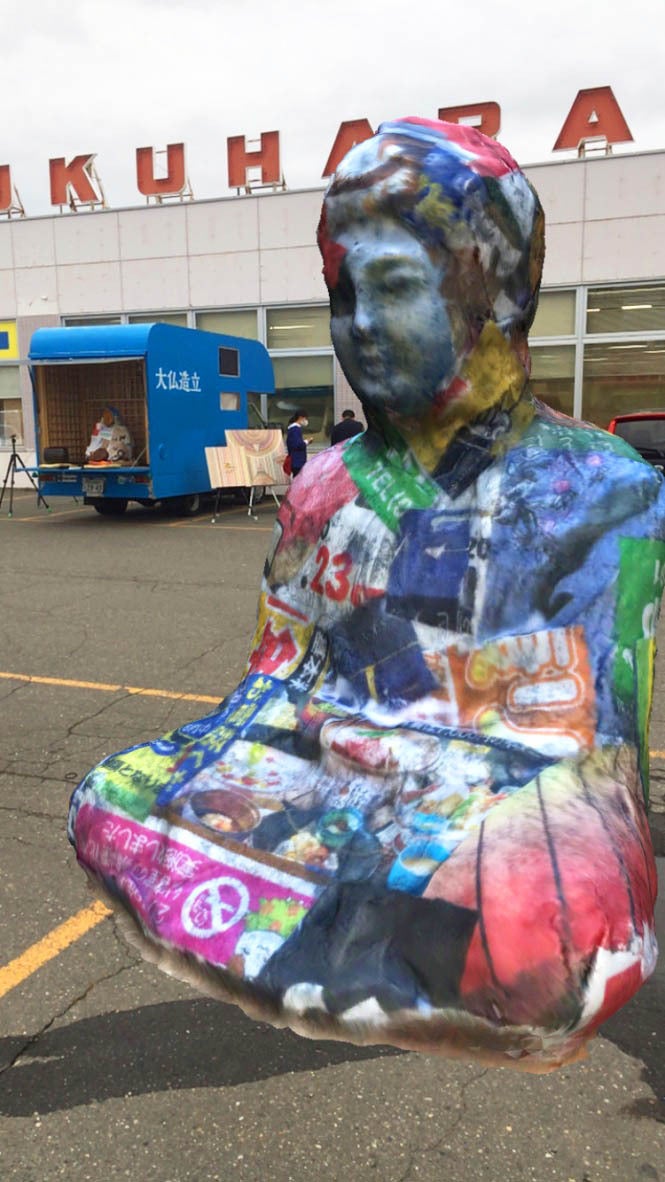 「勧進キャラバン」第6回目のイベントは、北海道十勝郡浦幌町にあるフクハラ浦幌店さんの駐車場で行いました。フクハラ浦幌店は地元のスーパーです。浦幌町立博物館の持田誠さんにご紹介していただきました。