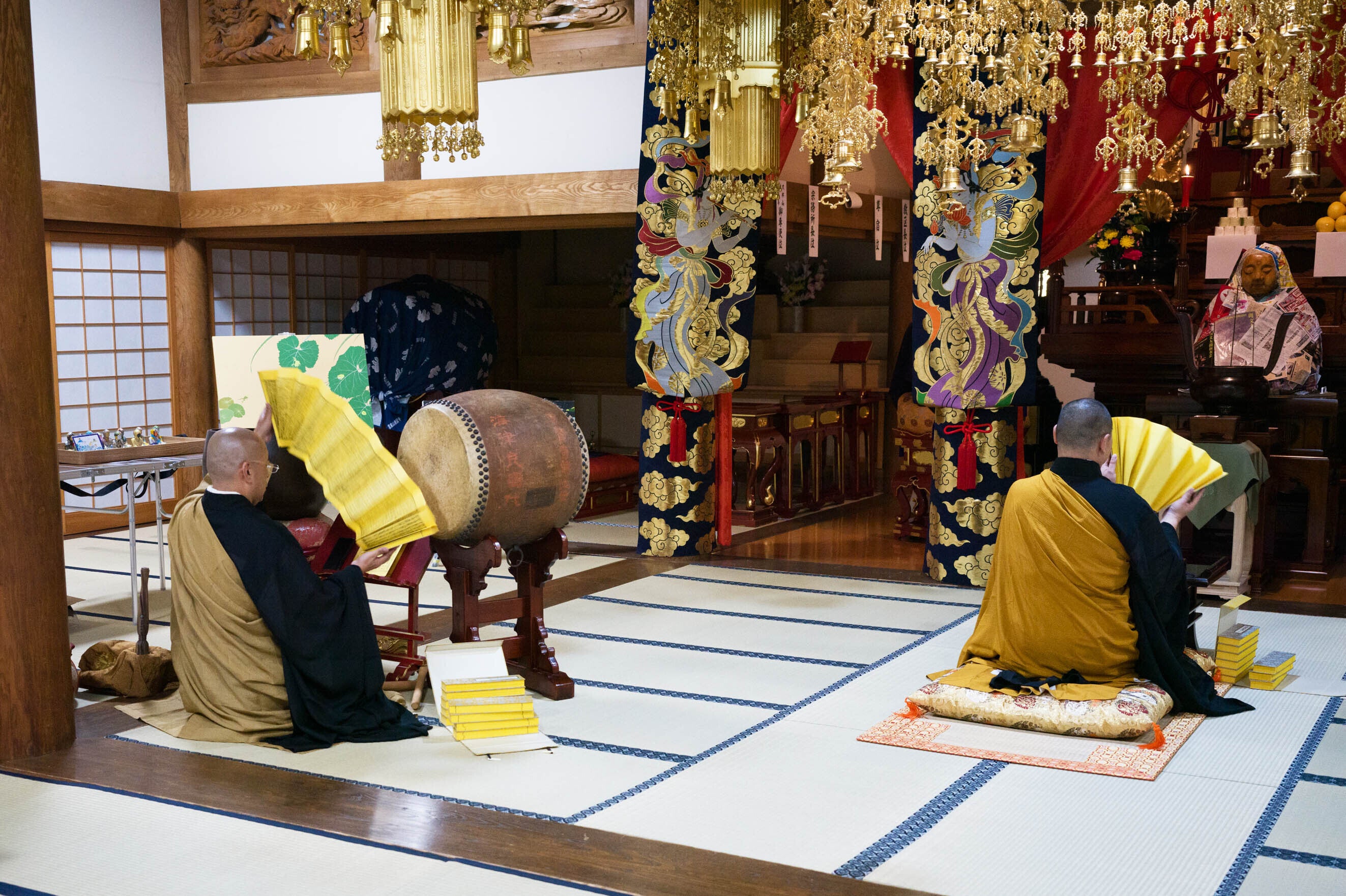今回は、住職のリズミカルな太鼓に合わせて般若心経を読む「転読大般若」を行わせていただきました。この先も曹洞宗寺院での法要では度々この形が登場します。