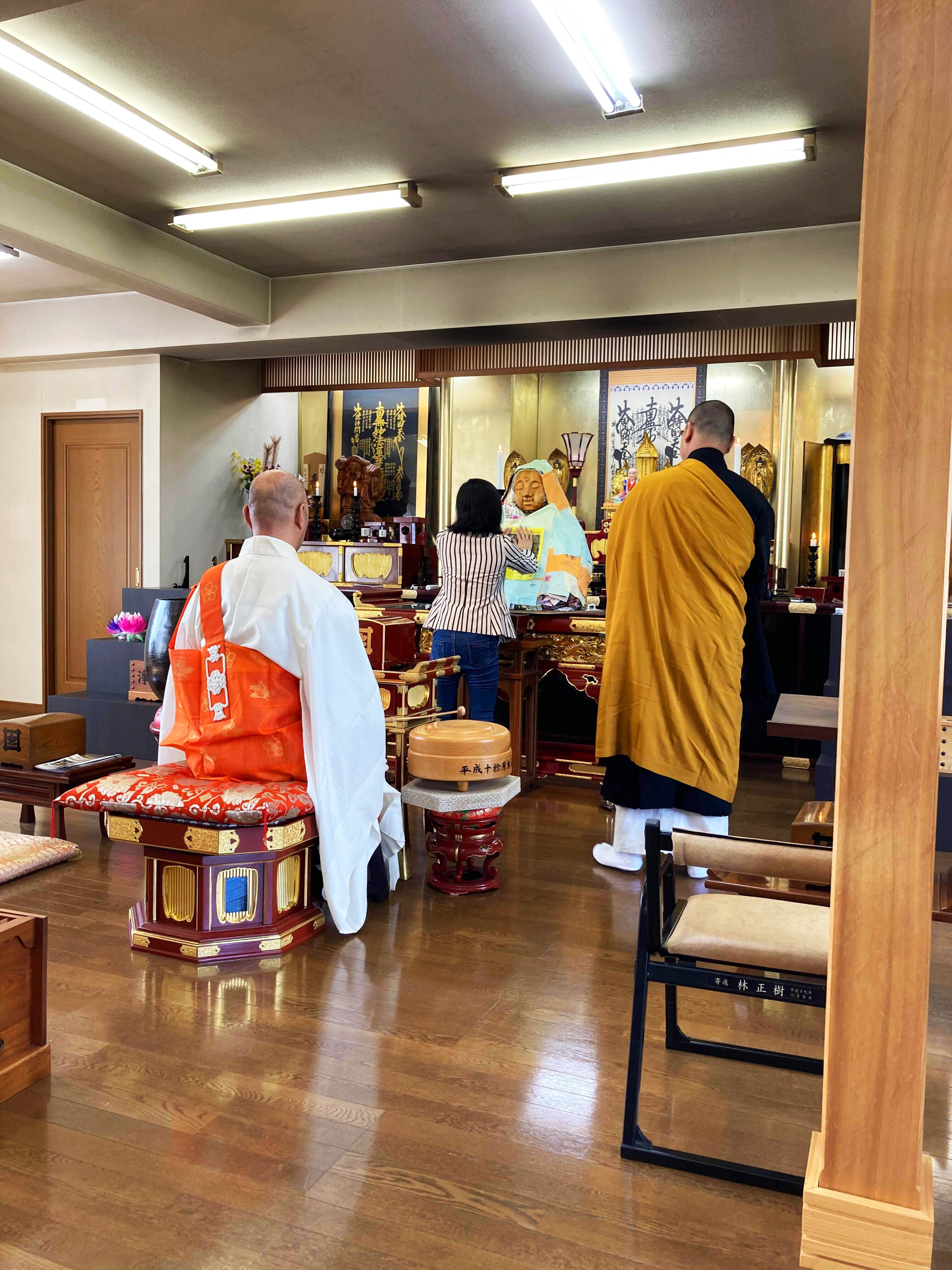 法要では、木剣(ぼっけん)という法具で九字(くじ)をきる「法楽(ほうらく)」という儀礼を行っていただきました。これを行うことで仏像の威徳をパワーアップさせることができるそうです。