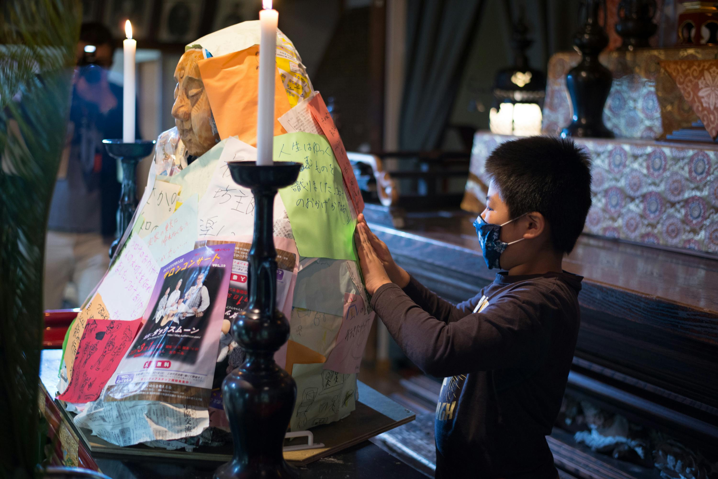 この日もお檀家さんや知人、そしてお寺のご家族などが沢山参加してくれました。カラフルな色紙にそれぞれの願いを書いて、勧進仏像に貼ってもらいます。