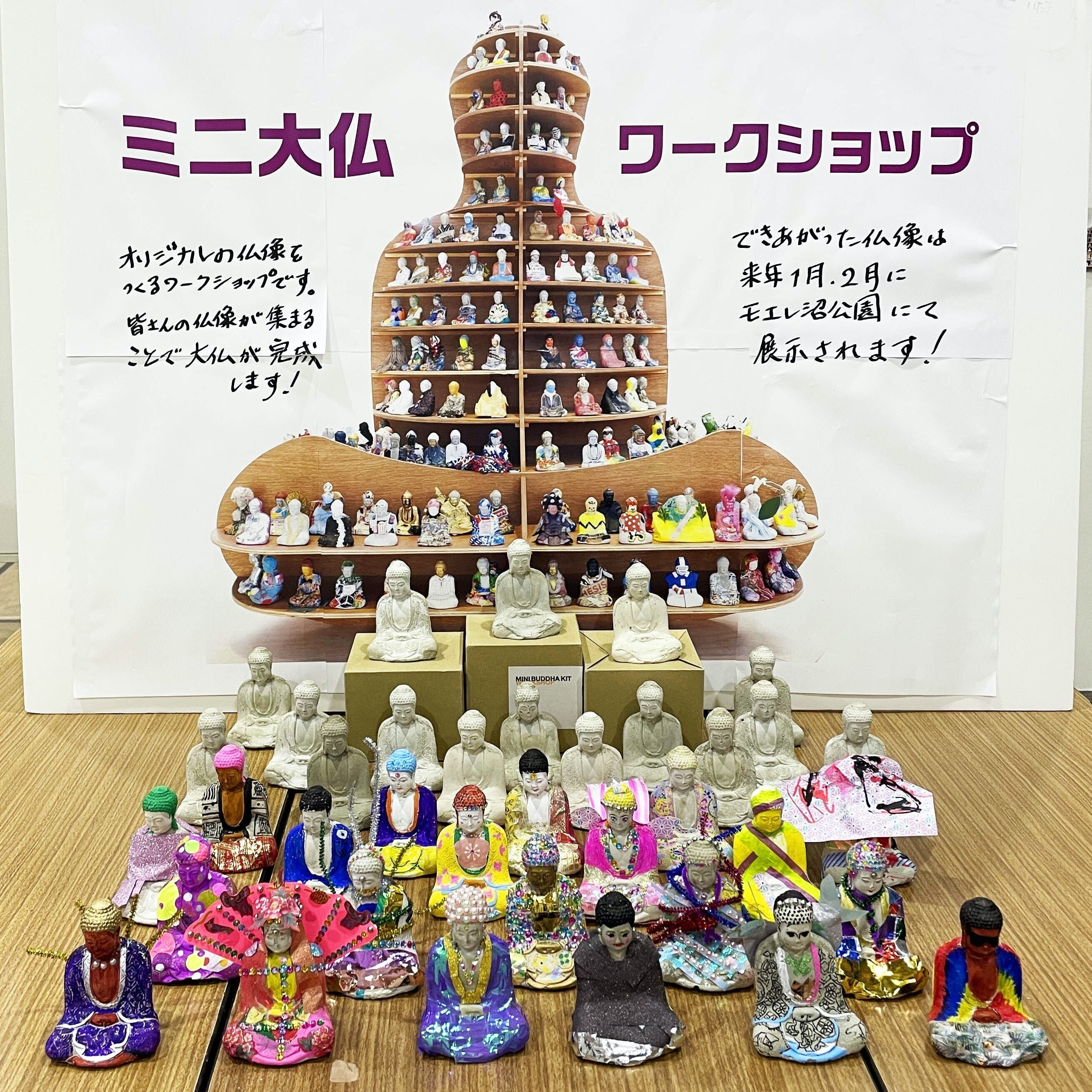 来年1月〜2月にお披露目する予定の大仏を構成する「ミニ大仏」をたくさん増やしてもらうために、全国各地でワークショップを開催します。お近くの方は、ぜひご参加ください!