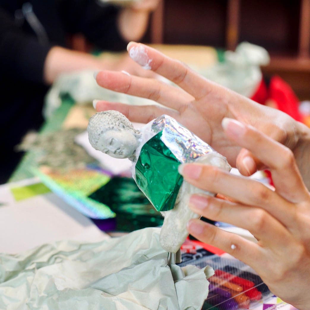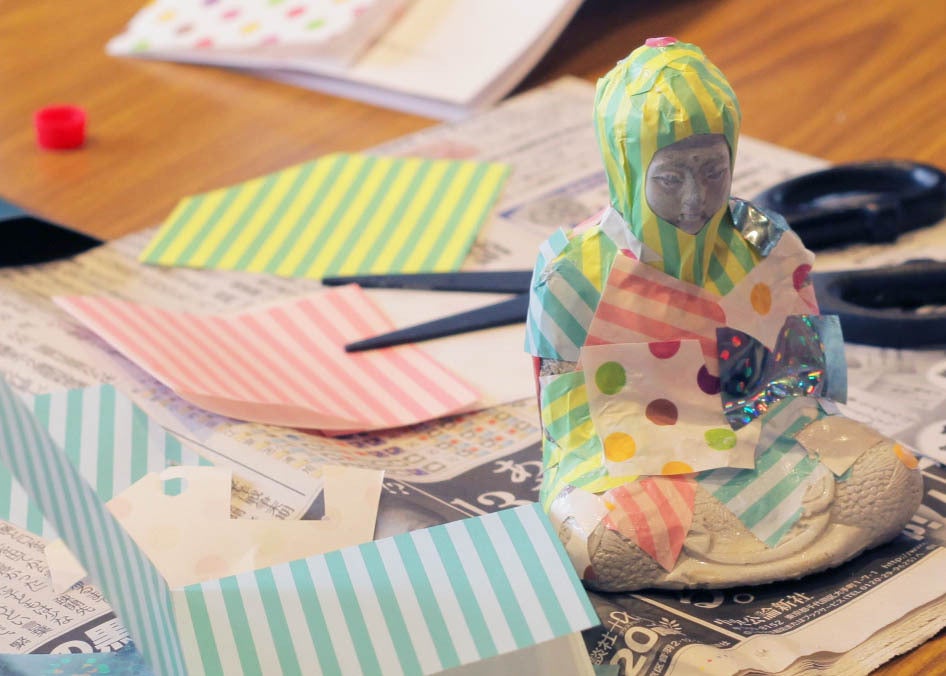 徳島県はなかなかイベント会場が見つからず苦労しましたが、香川のお寺さんに紹介していただき、安楽寺での開催を実現させてもらうことができました。美馬市には古い街並みが残っており、この際も素敵な古民家に宿泊させていただきました。こちらでは「ミニ大仏」をつくるワークショップも開催させていただきました。