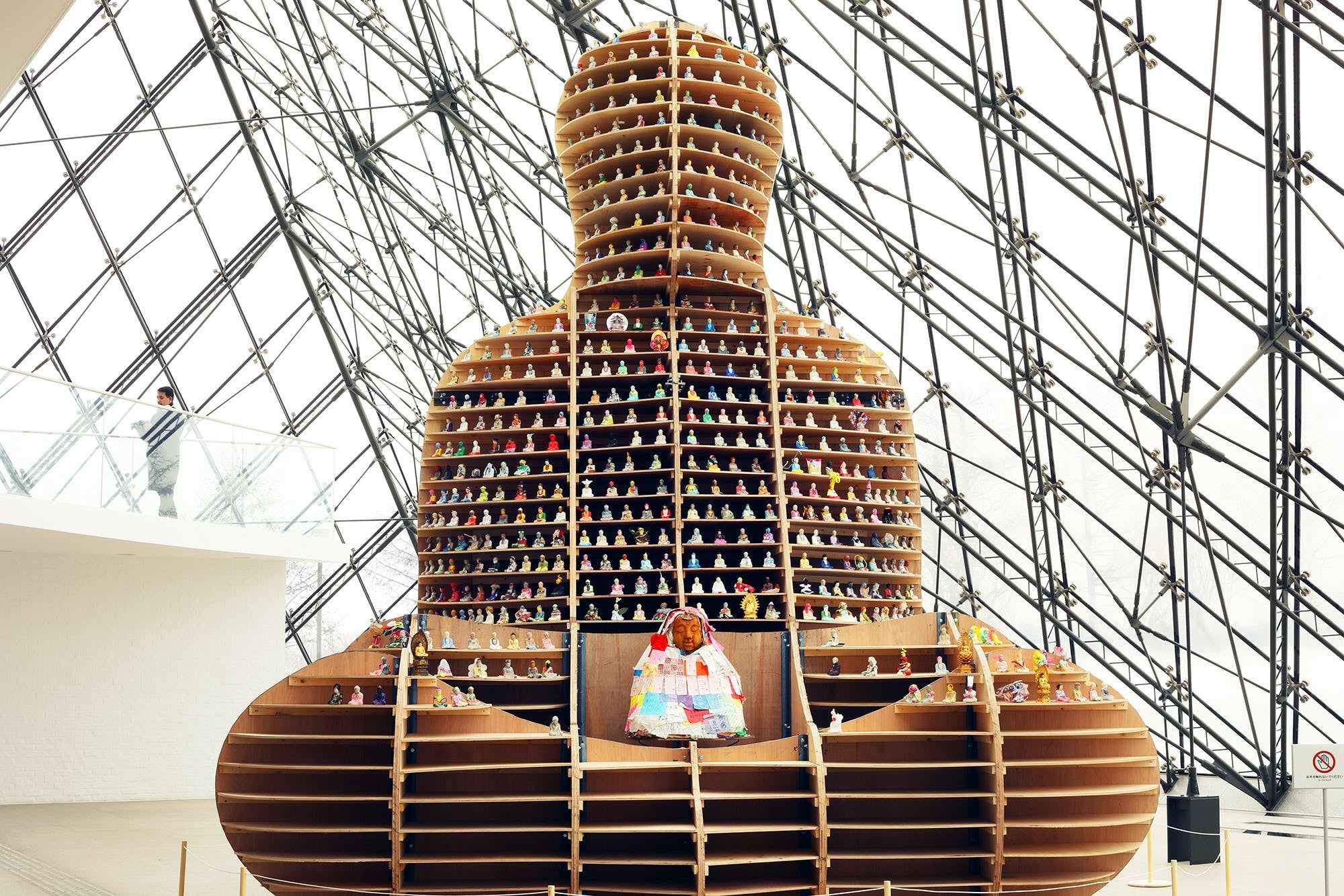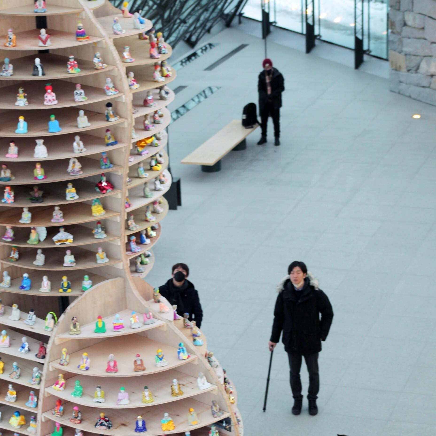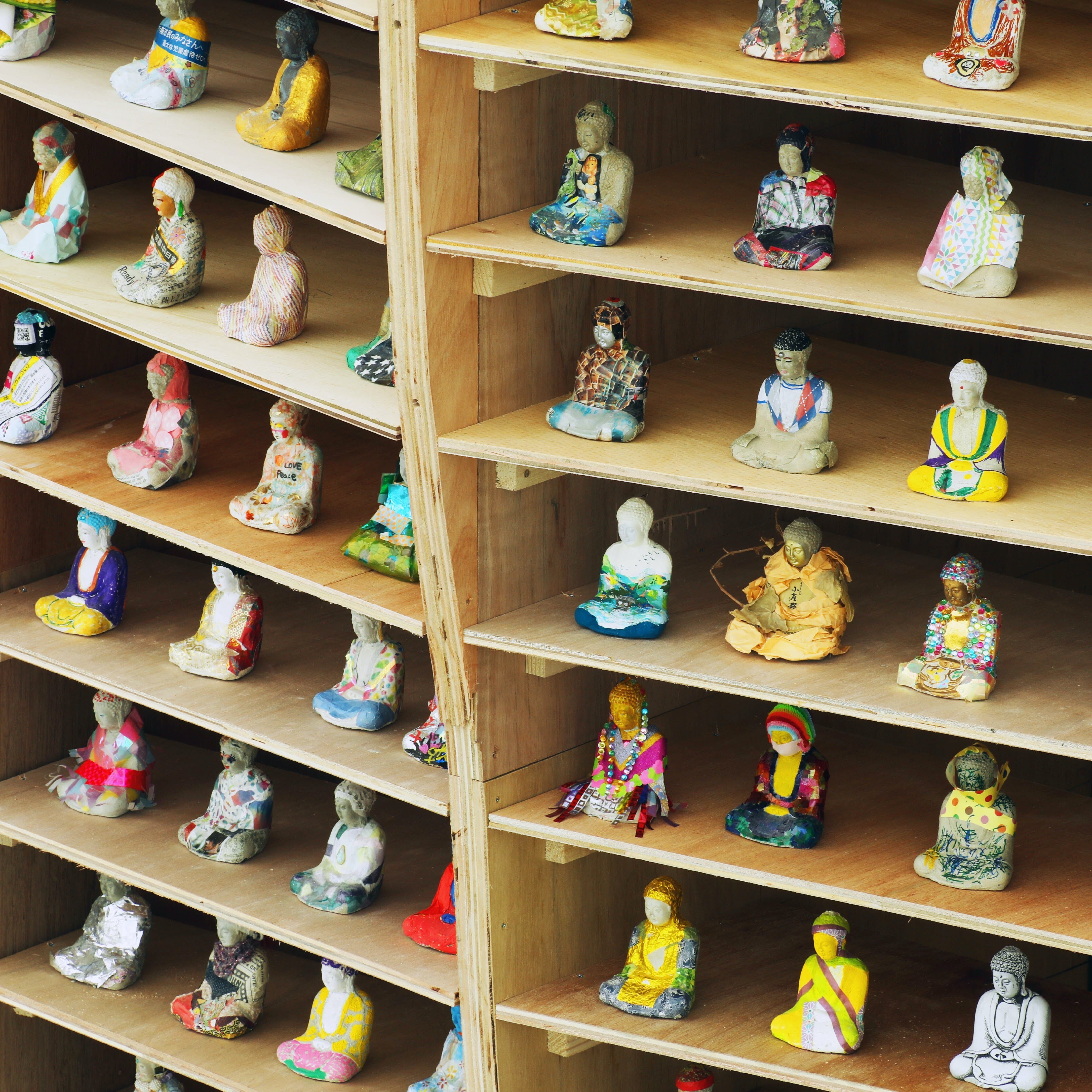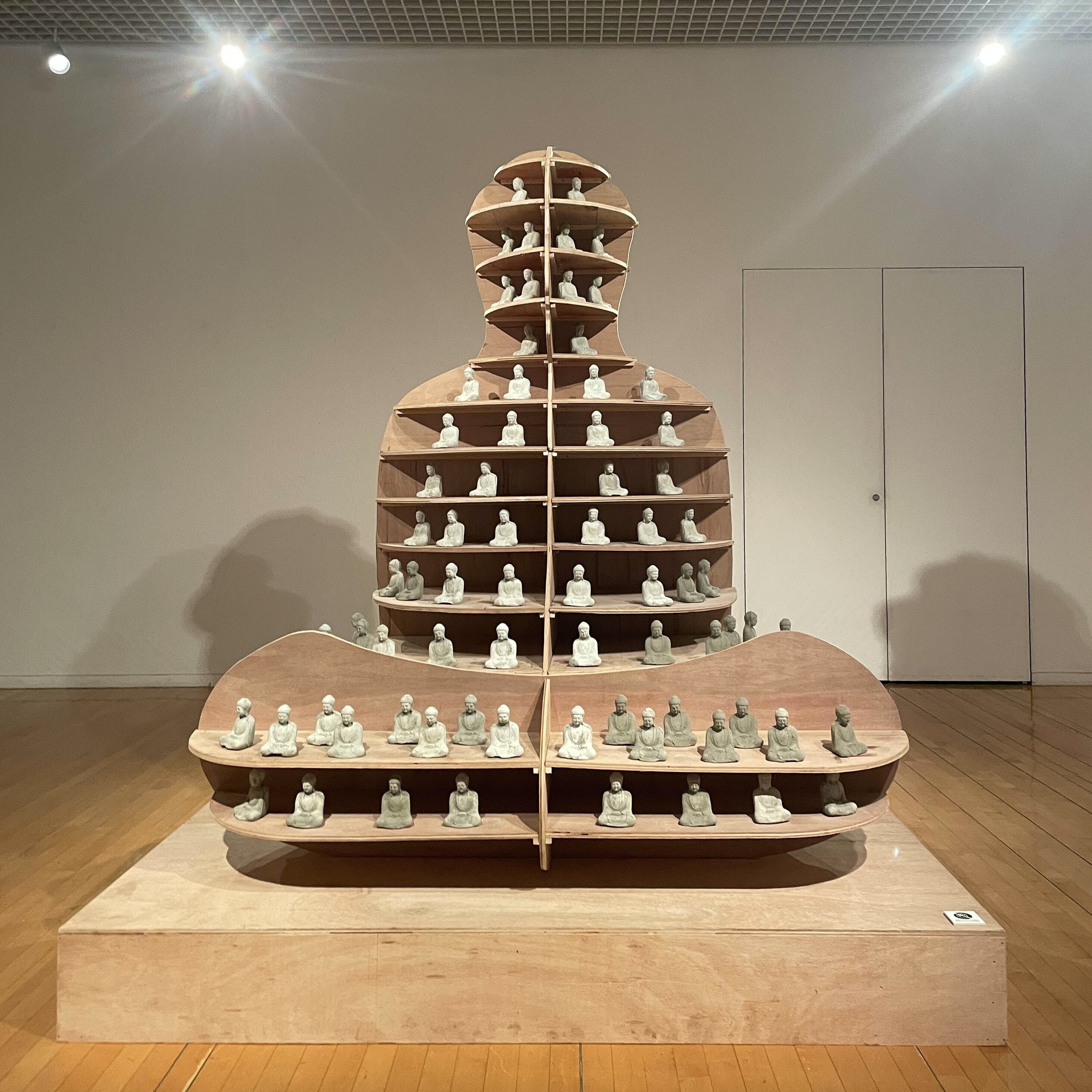 展覧会開始前の「ミニ大仏」は800体ほどでしたが、会期中に他会場でもワークショップを開催し続けた結果、1200体もの「ミニ大仏」を並べることができました。