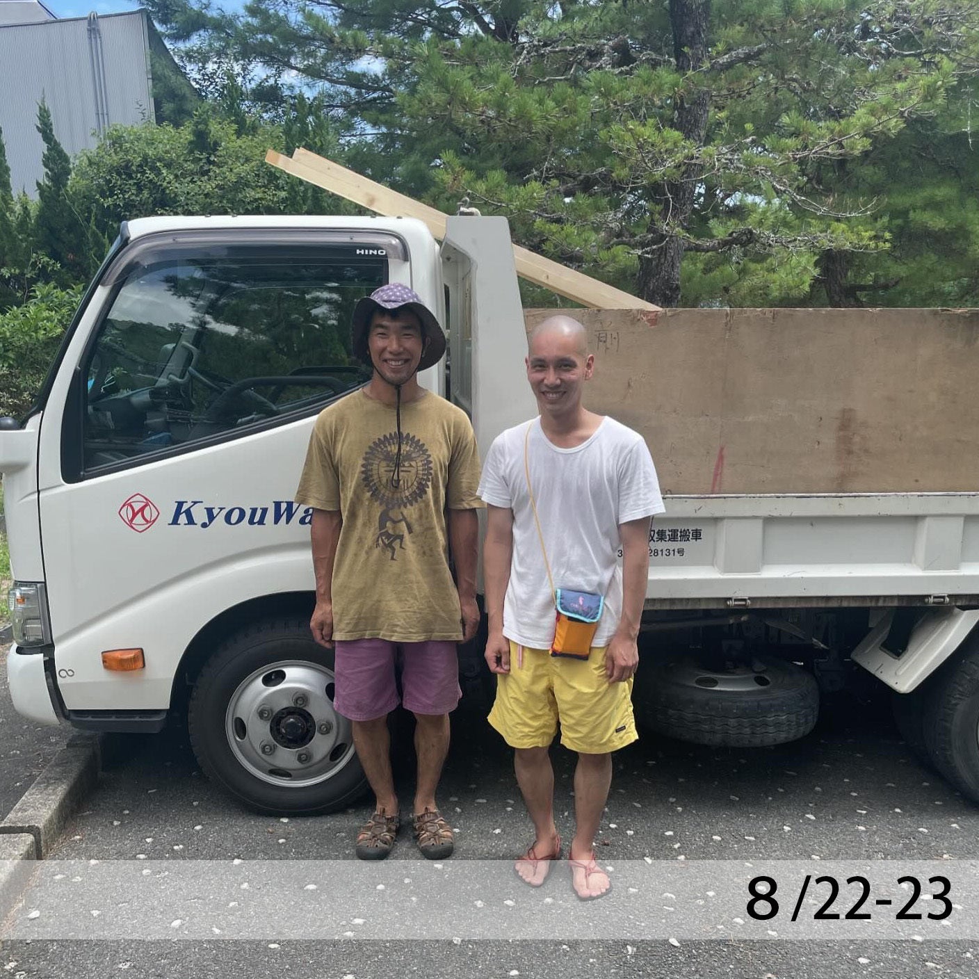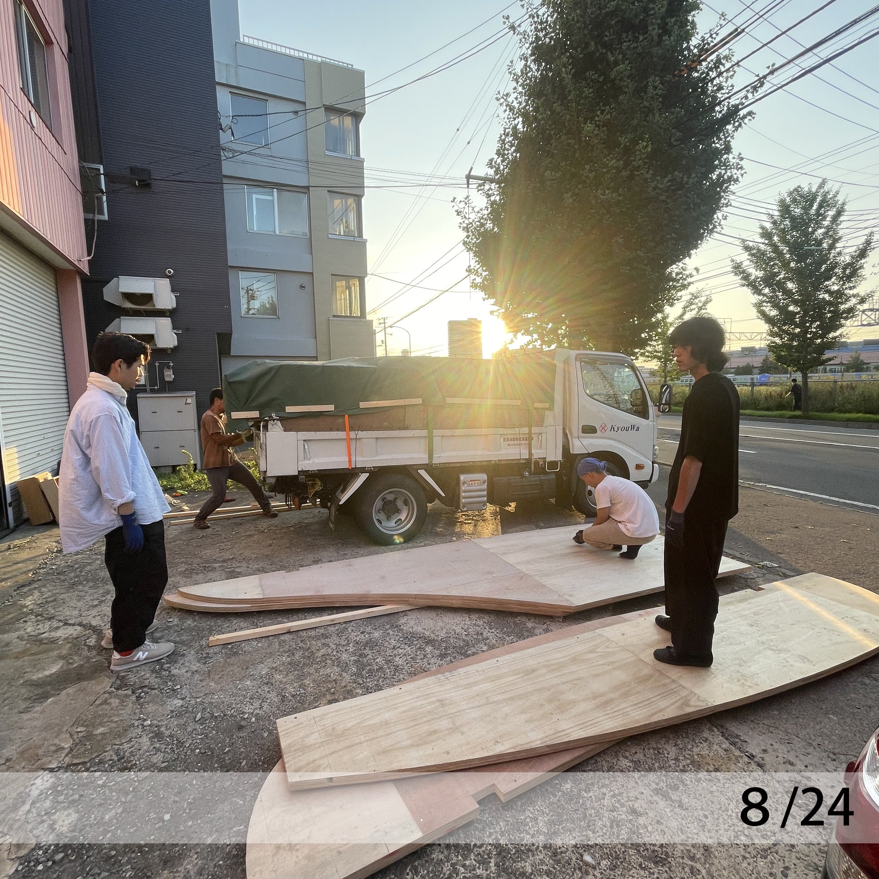 札幌「なえぼのアートスタジオ」に到着。月形/モエレ沼での設営も大活躍してくれた鷲尾くん(アーティスト)、川西くん(教育大生)に来てもらい、丸一日かけてトラックに部材を積み込み。トラックは小樽からフェリーに乗って舞鶴へ。
