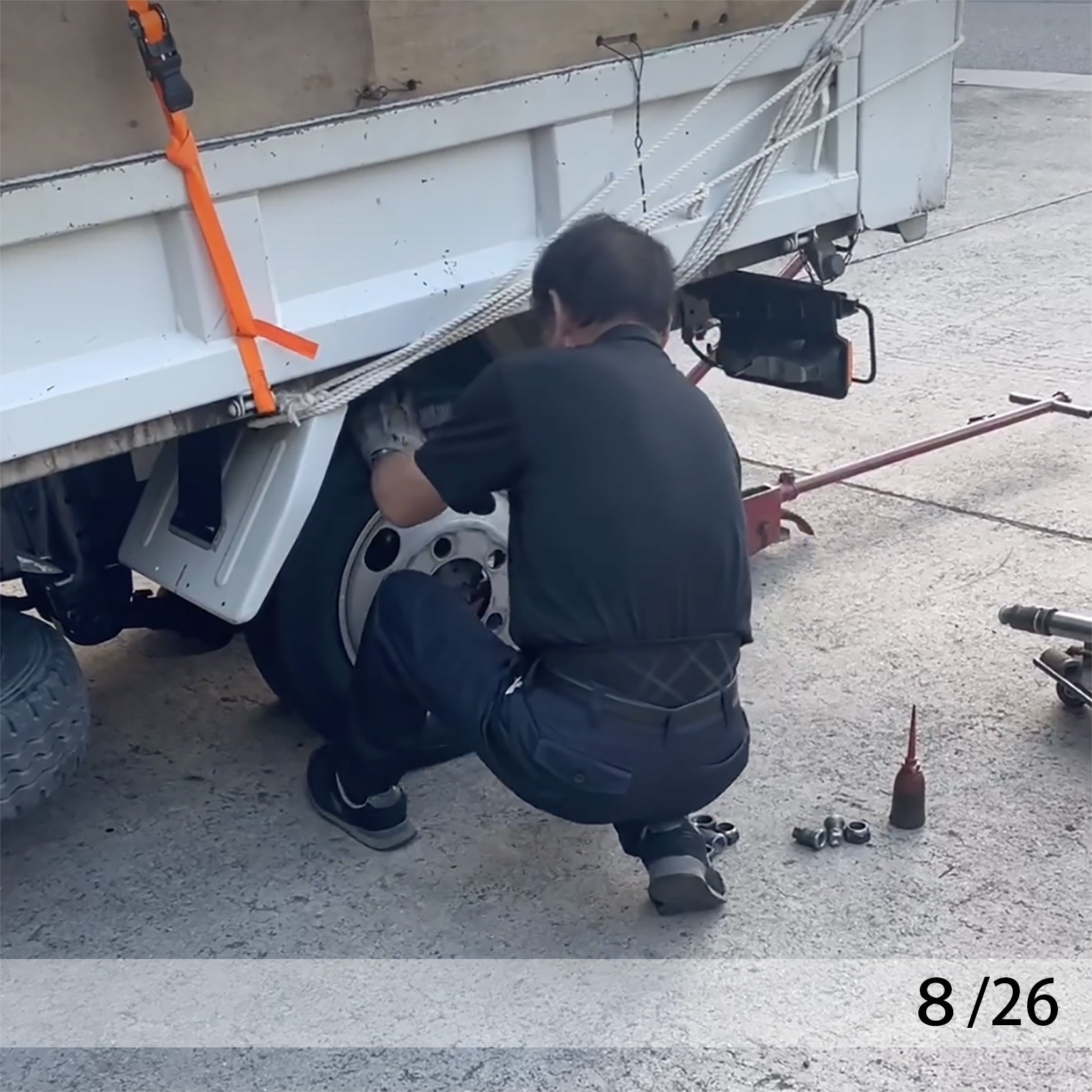 尼崎でもう一台トラック(B)をレンタルするも、整備不良で大量の煙が。代わりに持ってきてもらったトラック(C)に乗り換えて、バーストしたトラック(A)まで戻る。しかし、修理工場に専用のタイヤがなく、タイヤを求めて神戸までまた走る。