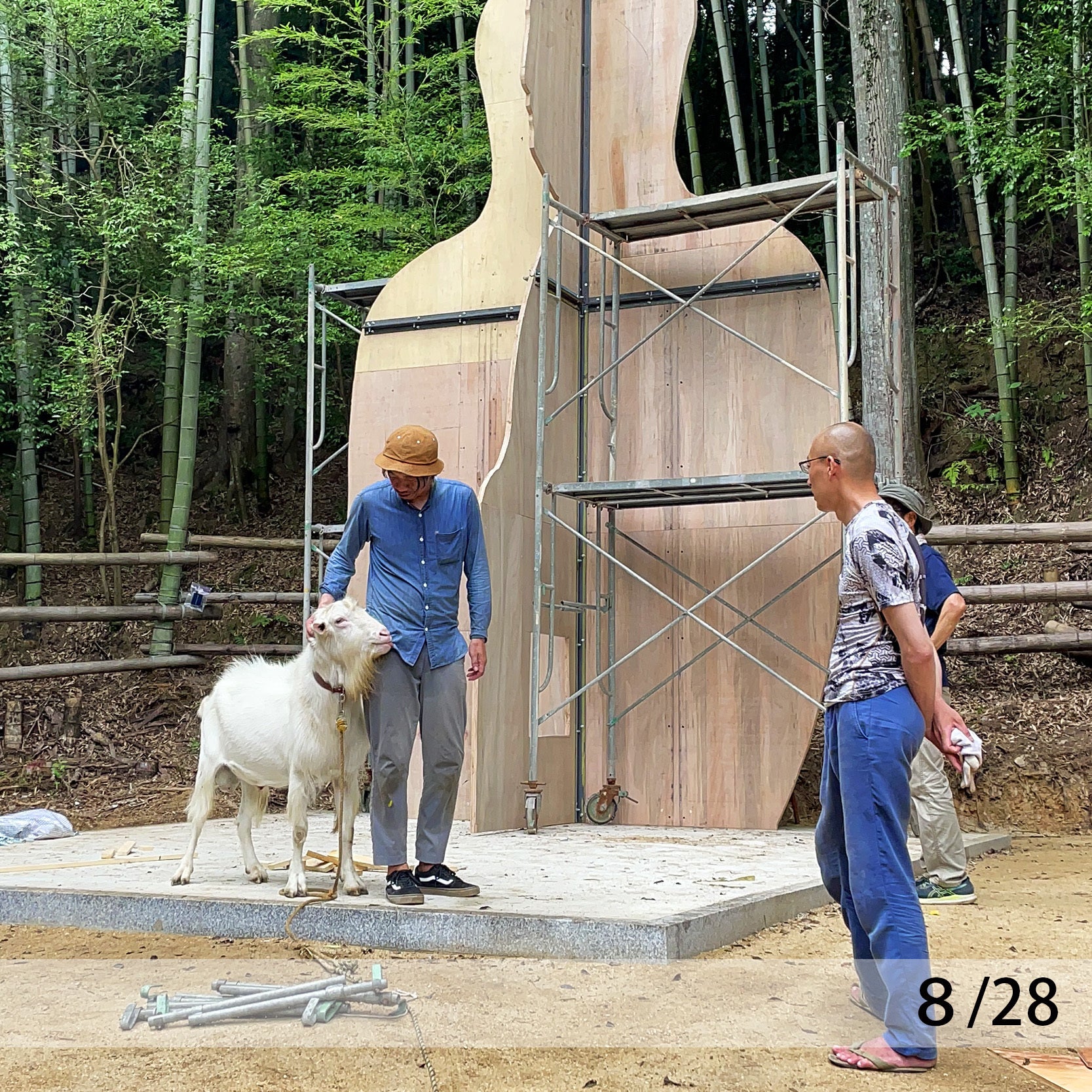 明日30日に台風が直撃するため、予定していた開眼法要は延期に。深野住職の計らいで、夜はみんなでYCAMへ行き、爆音映画祭の前夜祭コンサートを聞く。梅田哲也さんの演出は最高だったけれど、極度の疲労のため途中爆睡。