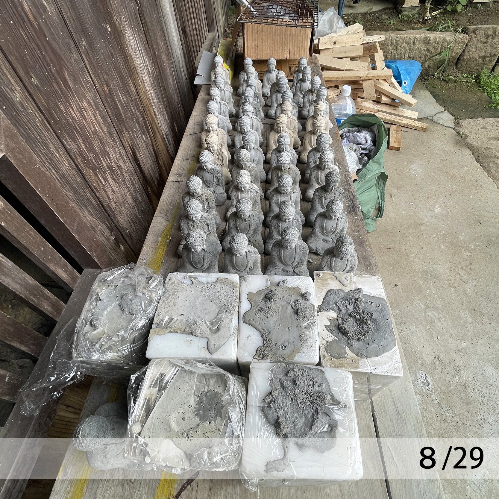 札幌から送った本日到着予定の勧進仏像とミニ大仏などの荷物は到着せず、万が一ワークショップまでに届かなかった時のために、素地のミニ大仏を型取りして増やしておく。