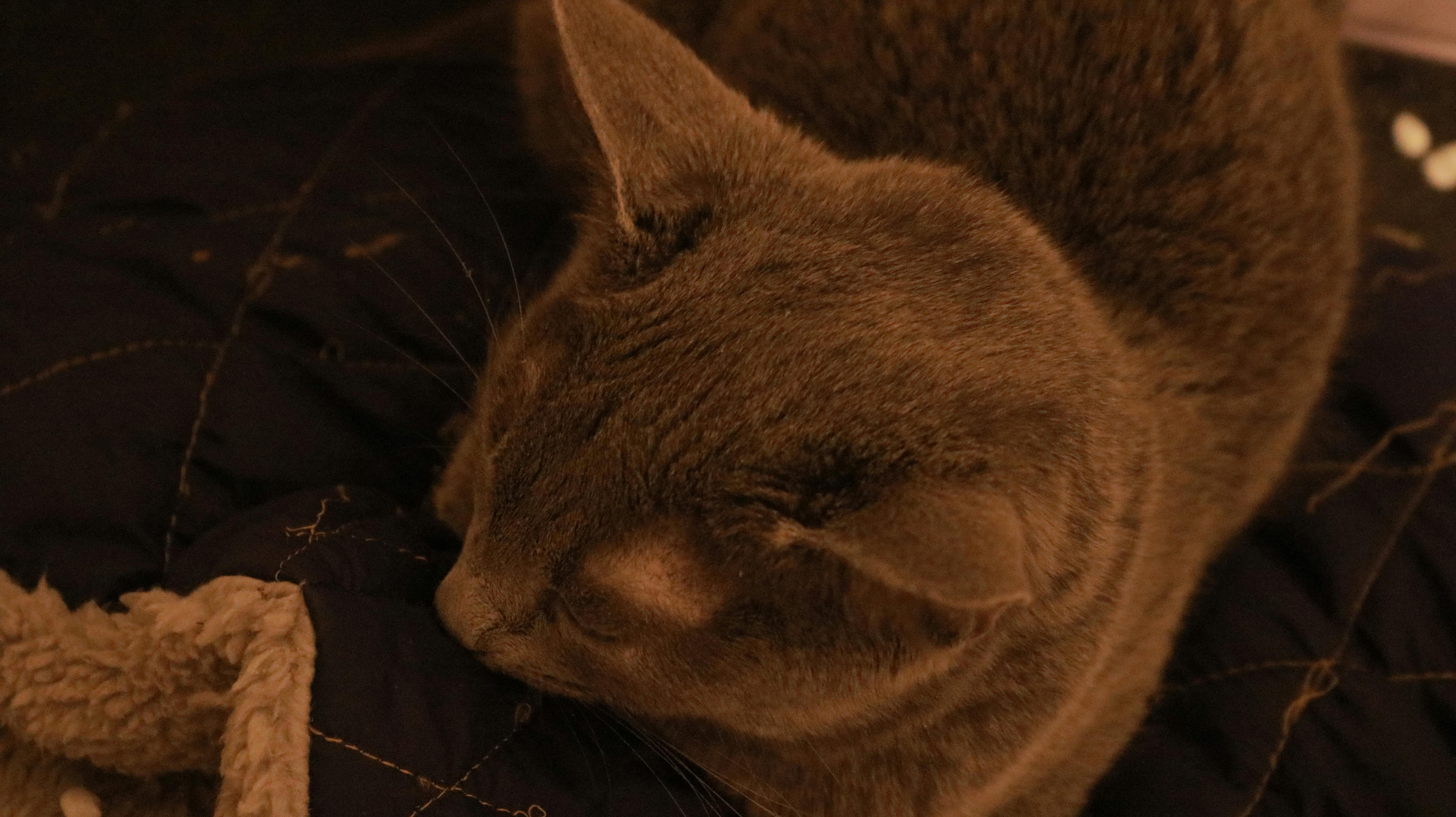 帰って来ると、以前は飛んで部屋から出てきてお風呂場の珪藻土マットを舐めに行っていたのですが、今日はお気に入りのマット上で丸くなったまま起き上がって来ません。