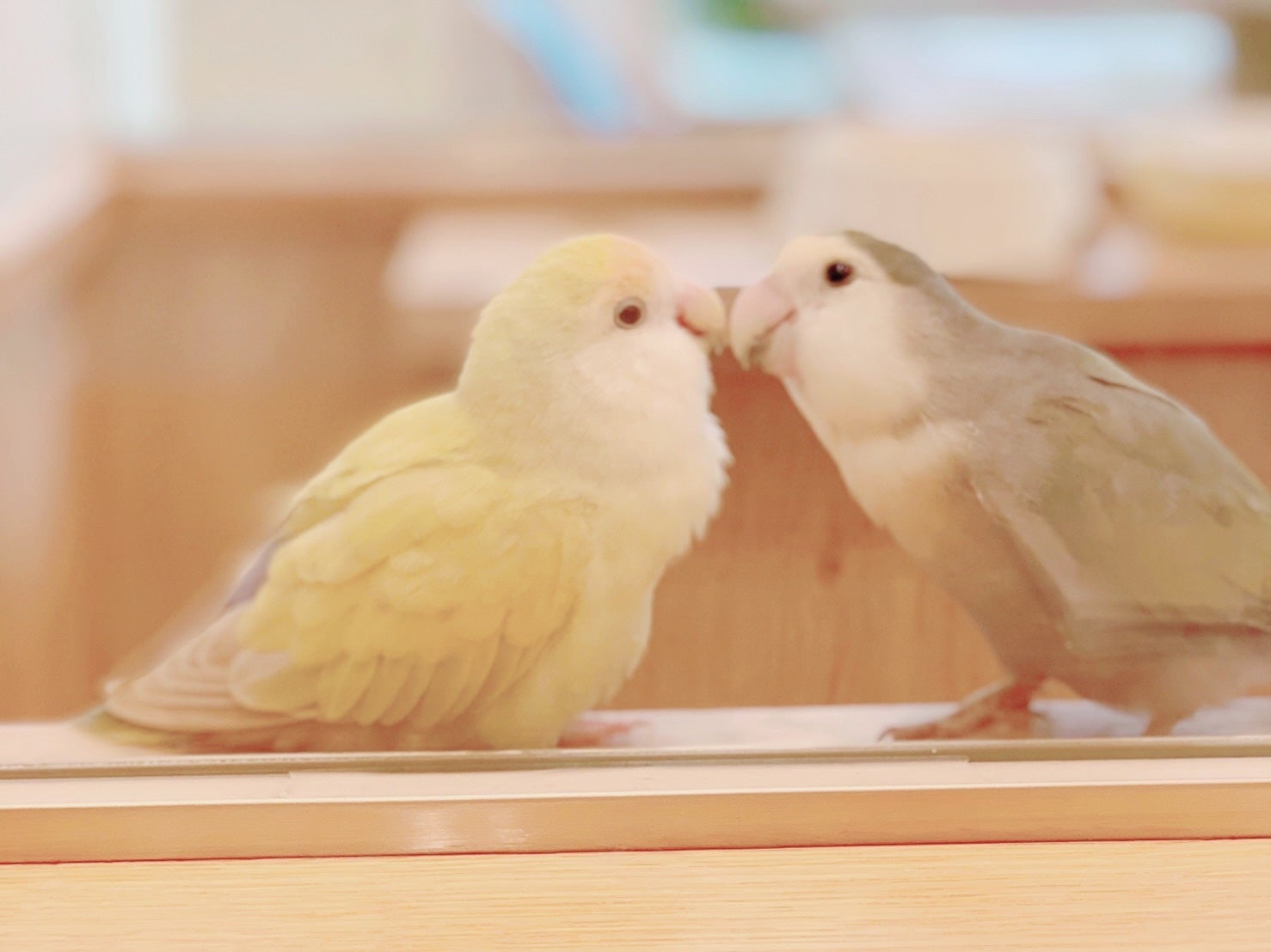 左:コザクラインコのふじこちゃん 右:コザクラインコのふじおくん