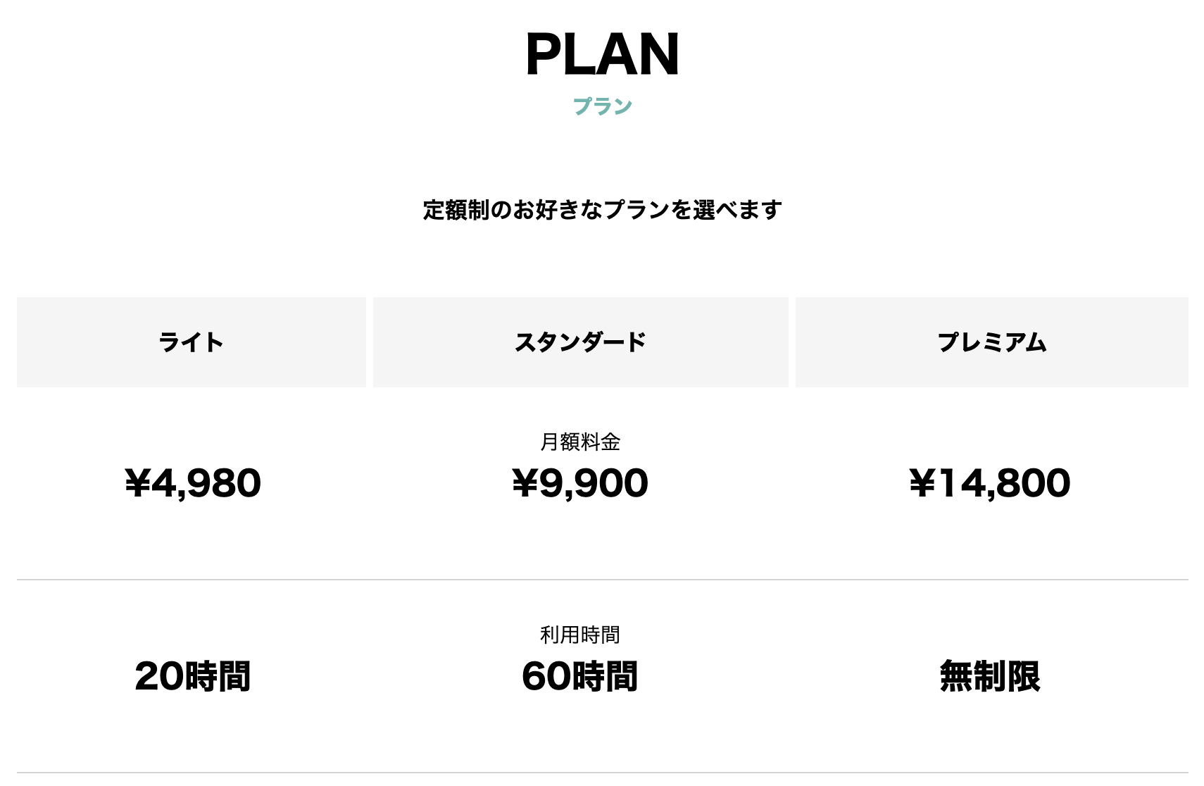 全てのスペースを自由に利用できるプレミアムプランと必要な時間だけ利用できるプランがあります。